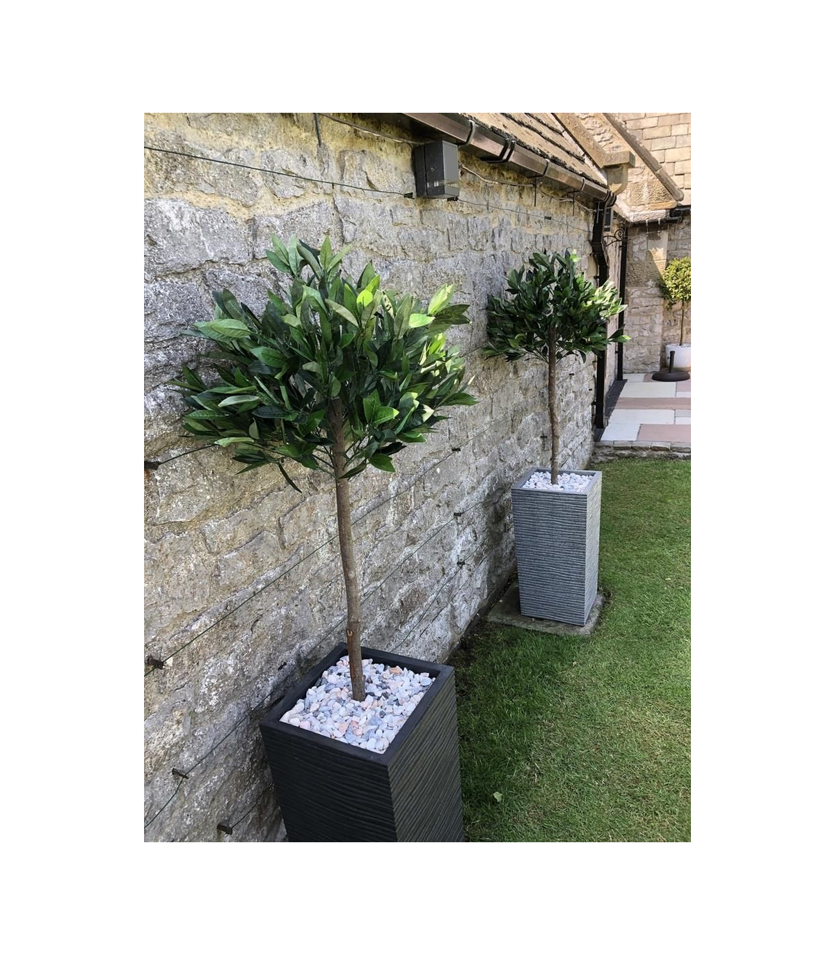 Bay trees and bushes are a classic entrance plant. Real ones can be hard to care for but our artificial bay trees are fantastically realistic and require no maintenance! We have these trees available in a range of heights and styles. Each height of tree is available either with or without the twisted trunk detail depending on your preference. This particular tree is 120cm high and has a plain trunk as shown. These artificial trees are available in a range of heights. They come potted in plastic pots and are ready to display - just arrange the stems as you wish. It is also very simple to put into a larger planter - just pop inside and cover with gravel or bark. There two styles available - Plain (with a normal trunk) and Twist (with twisted vine detail). Our trees are available in three sizes 90cm high x 45cm ball diameter. 120cm high x 50cm ball diameter. Price is per tree so if you need a pair for an entrance please order two.