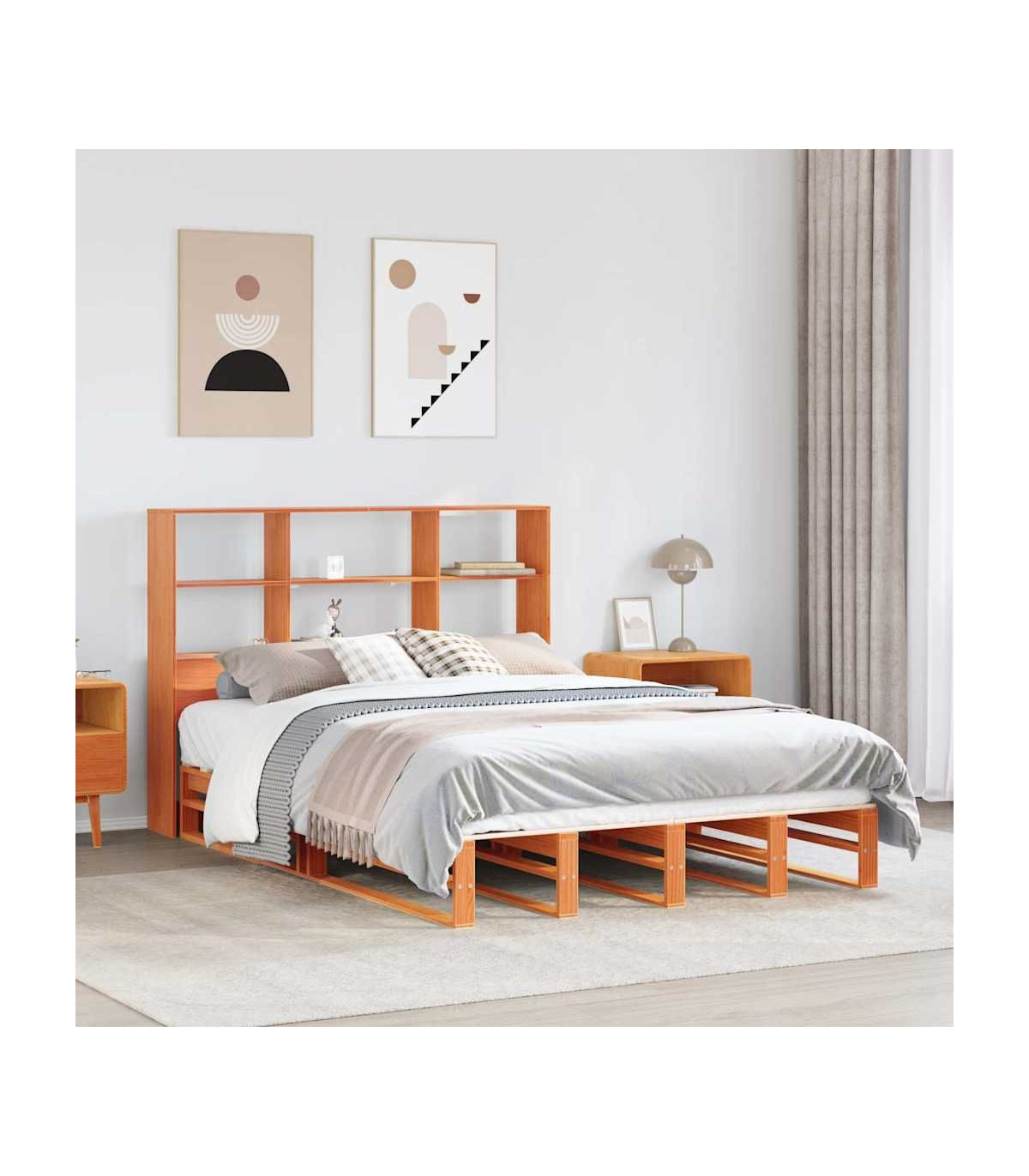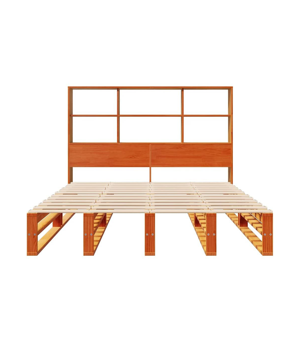 Get a better restful night's sleep from this bookcase bed! It makes a welcoming addition to any bedroom. Stable and long-lasting frame: Solid pinewood is known for its strength and durability. Its straight grains and distinctive knots contribute to its rustic charm.Slatted base for optimal support: The bed frame is equipped with a slatted base for support and breathability for your mattress.Ample storage space: This bookcase headboard offers ample storage space to keep books, decorative items, or personal belongings within easy reach, reducing clutter in the bedroom.Space saving: This headboard is a space-saving option that can replace the need for a bedside table, helping maximise your bedroom space, and making it ideal for small or limited spaces. Good to know:A mattress is not included with this bed. We do offer a various selection of mattresses. You can check our shop for a matching mattress.