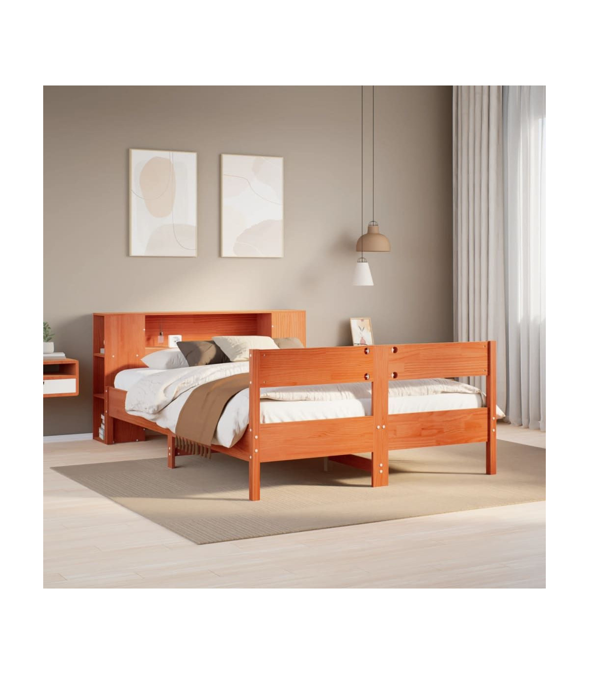 vidaXL Bookcase Bed without Mattress Wax Brown 150x200 cm King Size Solid Wood Pine