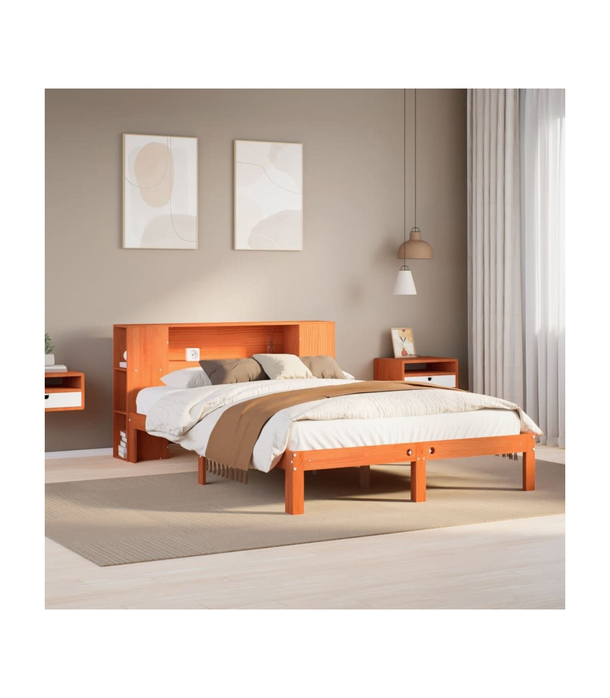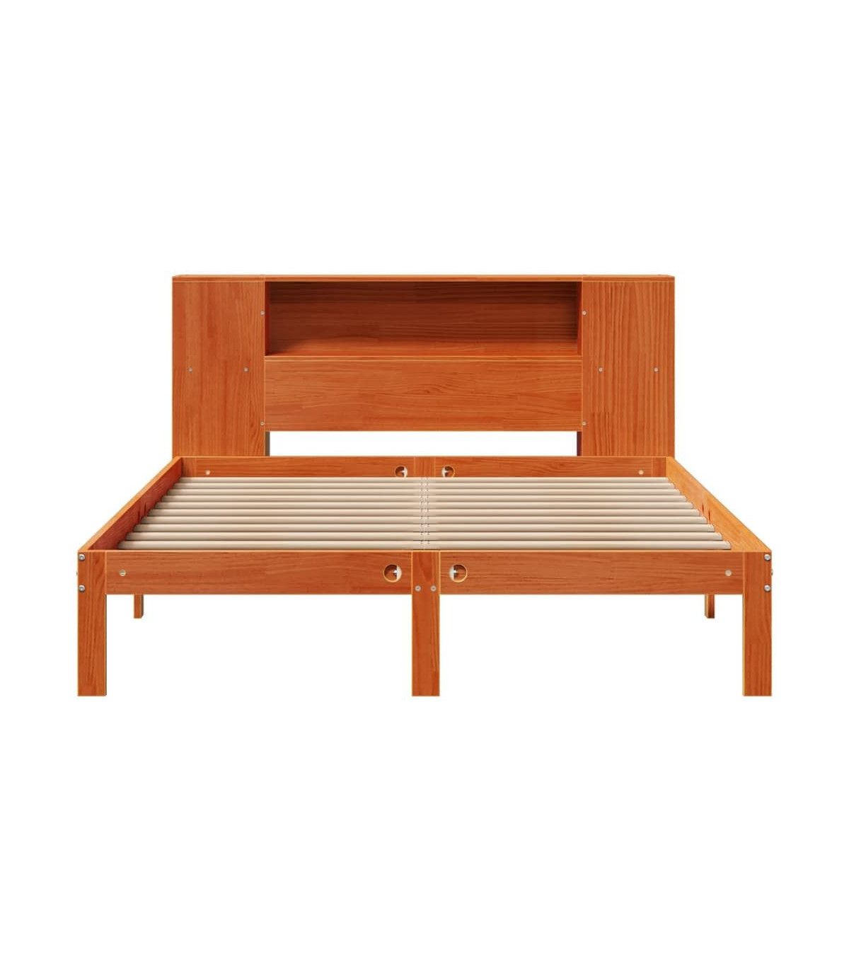 Get a better restful night's sleep from this bookcase bed! It makes a welcoming addition to any bedroom. Stable and long-lasting frame: Solid pinewood is known for its strength and durability. Its straight grains and distinctive knots contribute to its rustic charm.Slatted base for optimal support: The bed frame is equipped with a slatted base for support and breathability for your mattress.Ample storage space: This bookcase headboard offers ample storage space to keep books, decorative items, or personal belongings within easy reach, reducing clutter in the bedroom.Space saving: This headboard is a space-saving option that can replace the need for a bedside table, helping maximise your bedroom space, and making it ideal for small or limited spaces. Good to know:A mattress is not included with this bed. We do offer a various selection of mattresses. You can check our shop for a matching mattress.