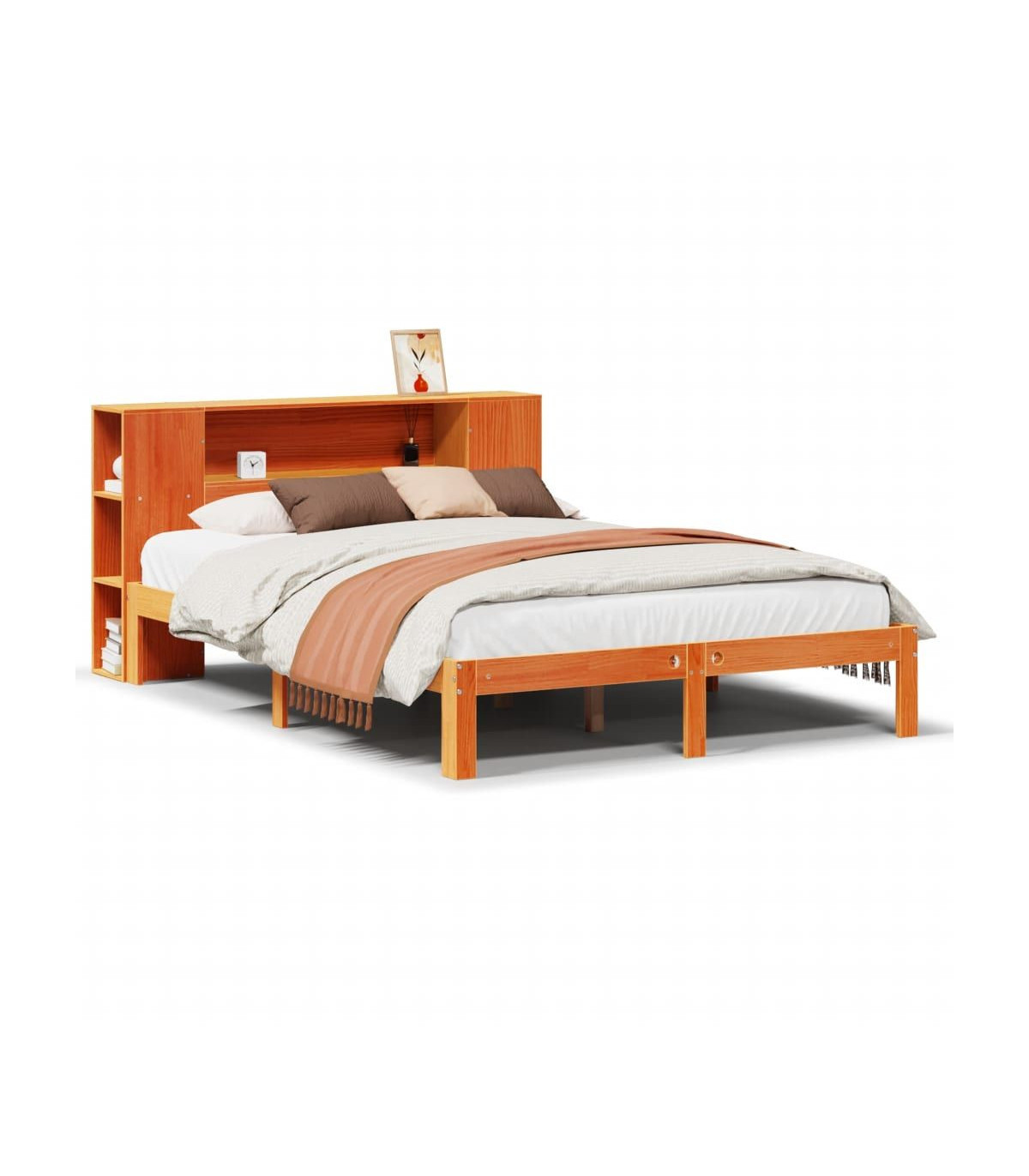 vidaXL Bookcase Bed without Mattress Wax Brown 135x190 cm Doouble Solid Wood Pine