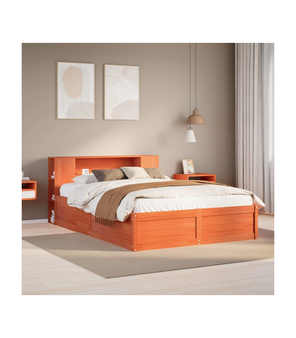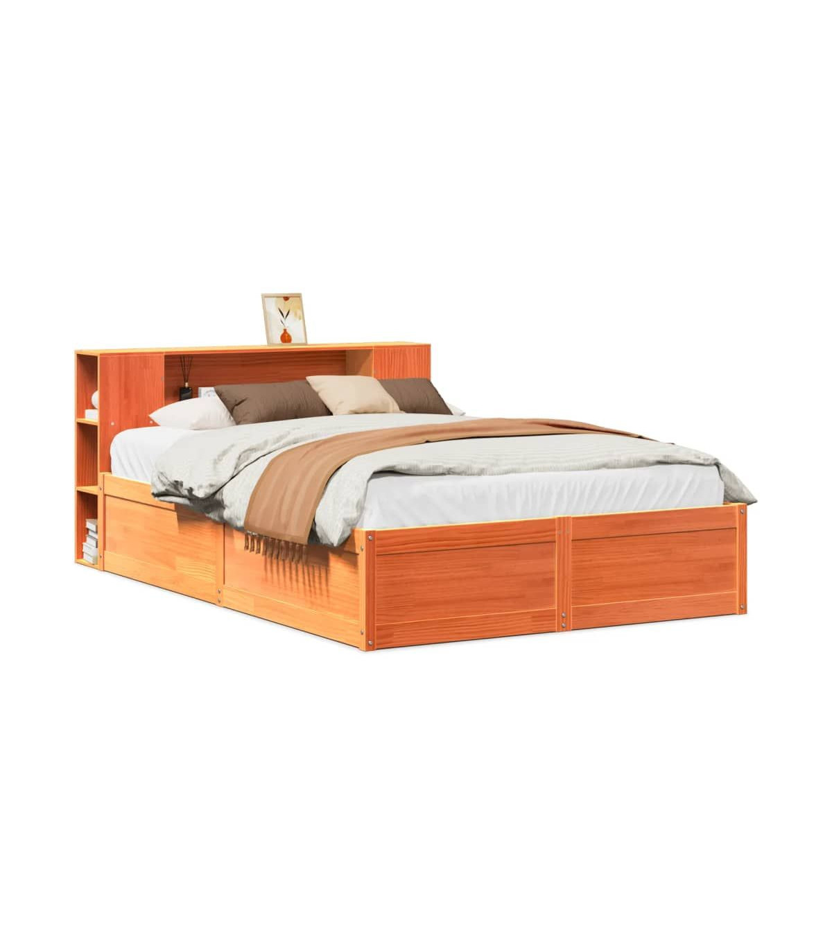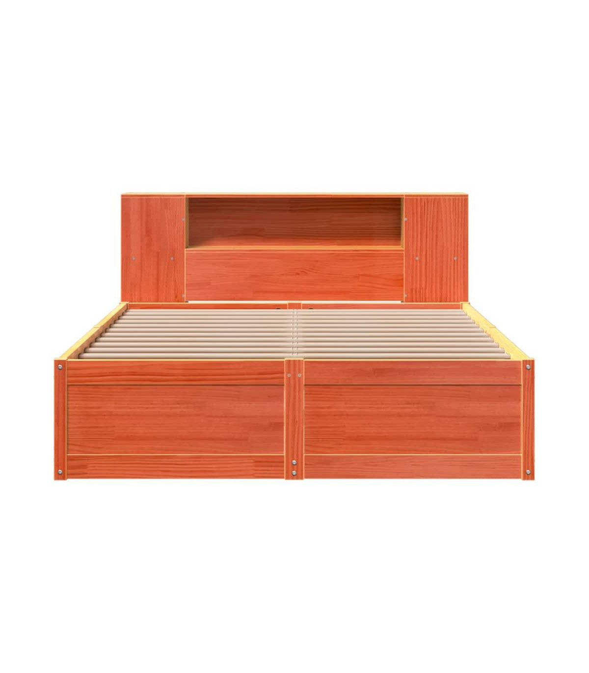 Enjoy a good night's sleep in this wooden bed frame! It makes a practical and decorative addition to your interior. Solid pine wood: Solid pine wood is a beautiful natural material. Pine wood has a straight grain, and the knots give the material its signature, rustic look.Sturdy bed frame: The wooden frame ensures sturdiness and stability. The plywood slats provide good weight distribution, ensuring that the mattress stays in place with every twist and turn of your body during sleep.Space saving: This headboard is a space-saving option that can replace the need for a bedside table, helping maximise your bedroom space, and making it ideal for small or limited spaces.Functional headboard: The headboard of the wooden bed can keep your mattress in place. Also, the headboard provides you with excellent back support when you sit up in bed to read or watch TV.Ample storage space: This sleek headboard features seven convenient shelves, offering ample storage space to keep all your nighttime essentials within easy reach. Good to know:A mattress is not included with this bed. We do offer a various selection of mattresses. You can check our shop for a matching mattress.