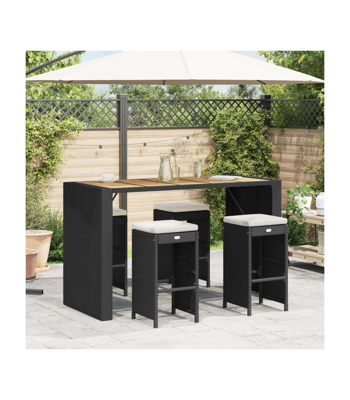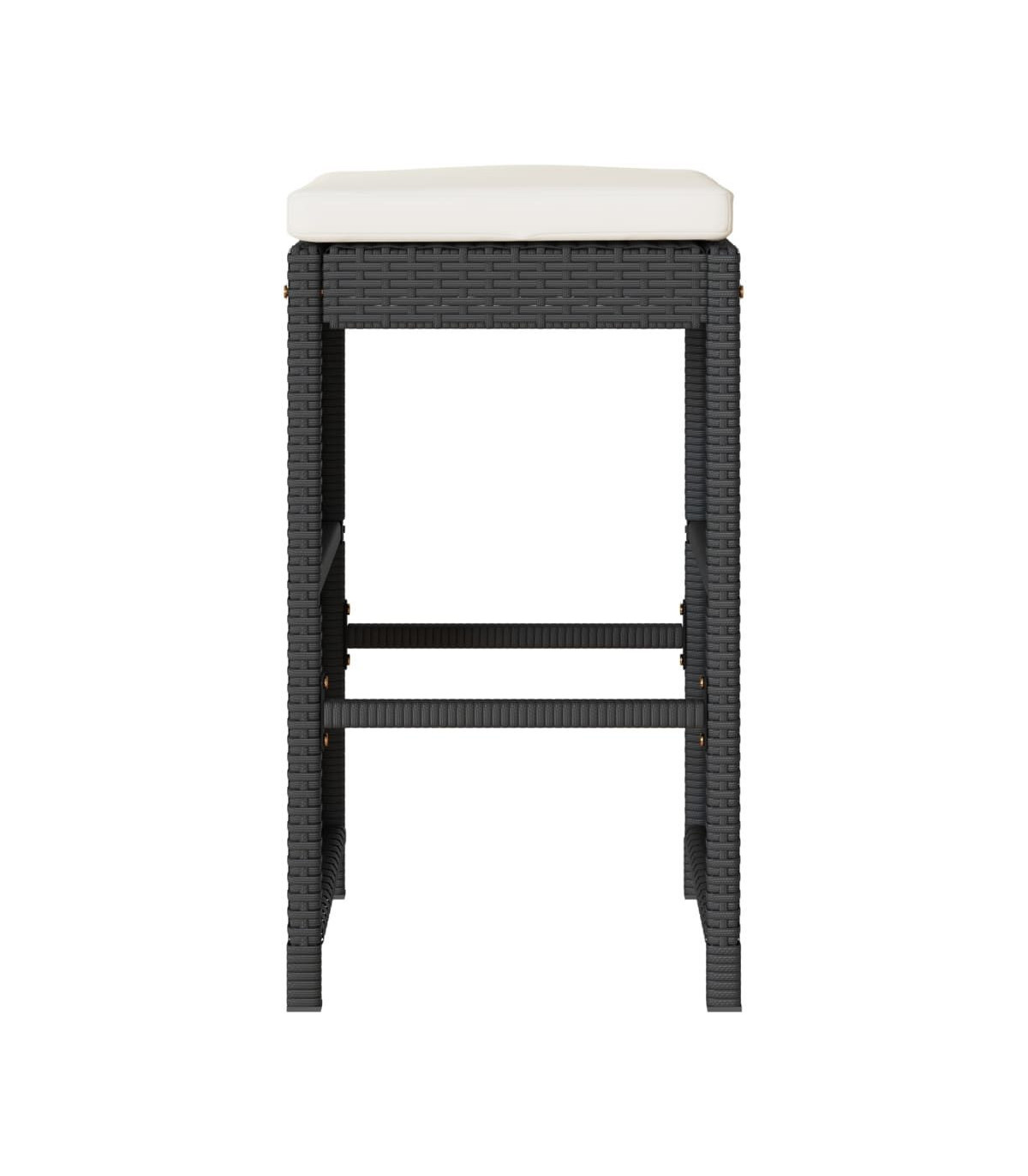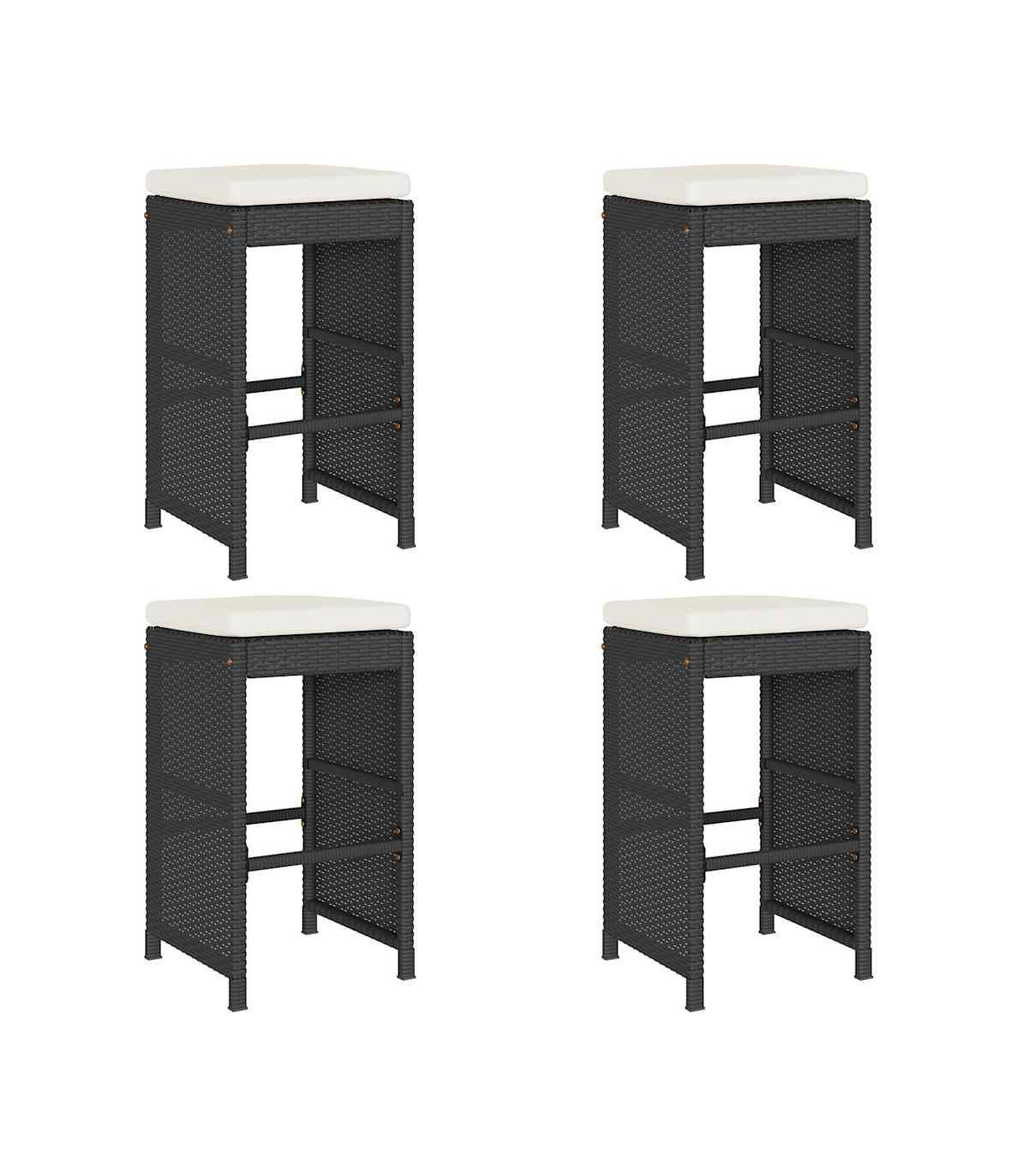 vidaXL Garden Bar Stools with Cushions 4 pcs Black Poly Rattan