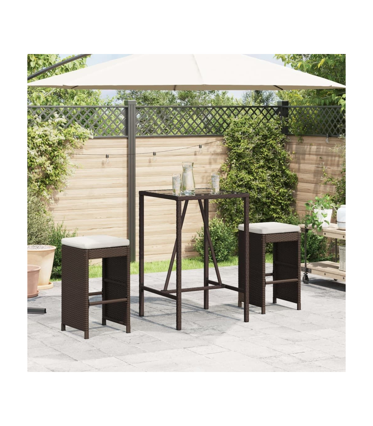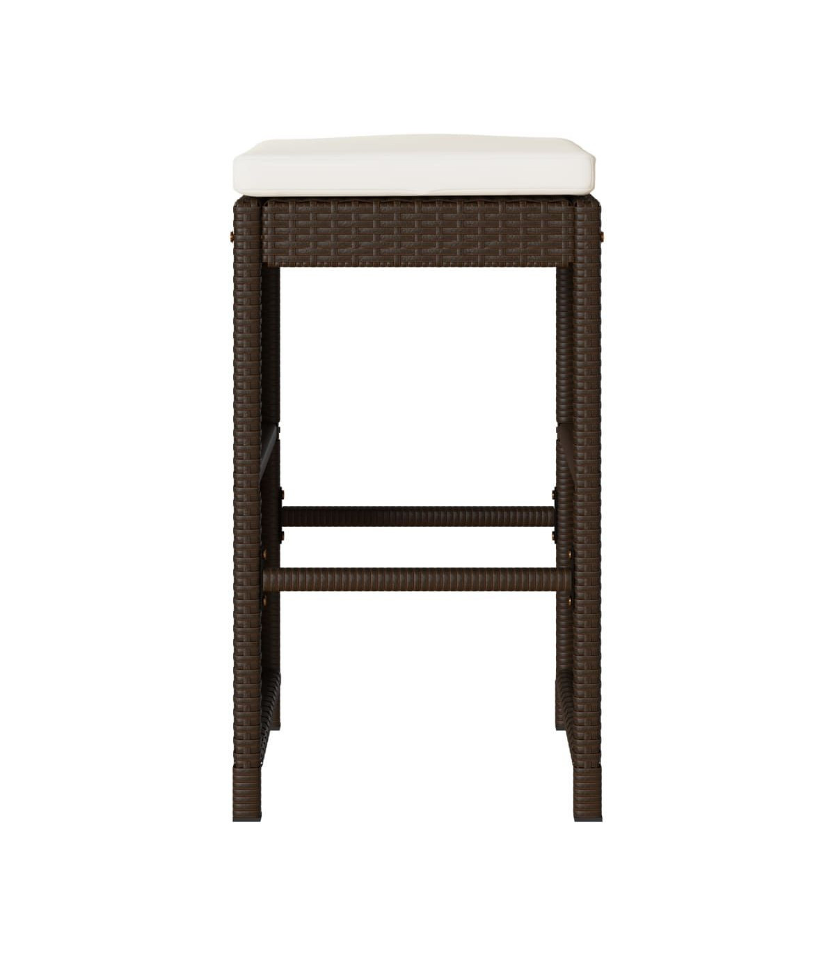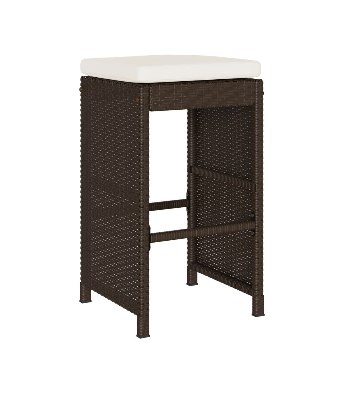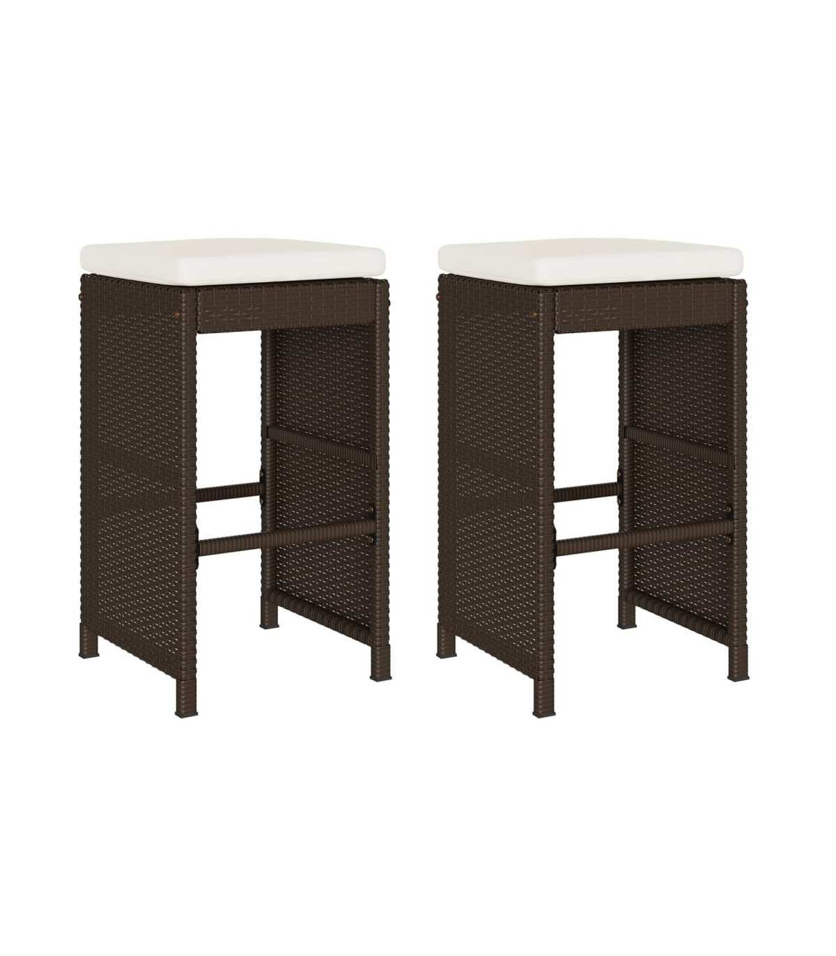 vidaXL Garden Bar Stools with Cushions 2 pcs Brown Poly Rattan