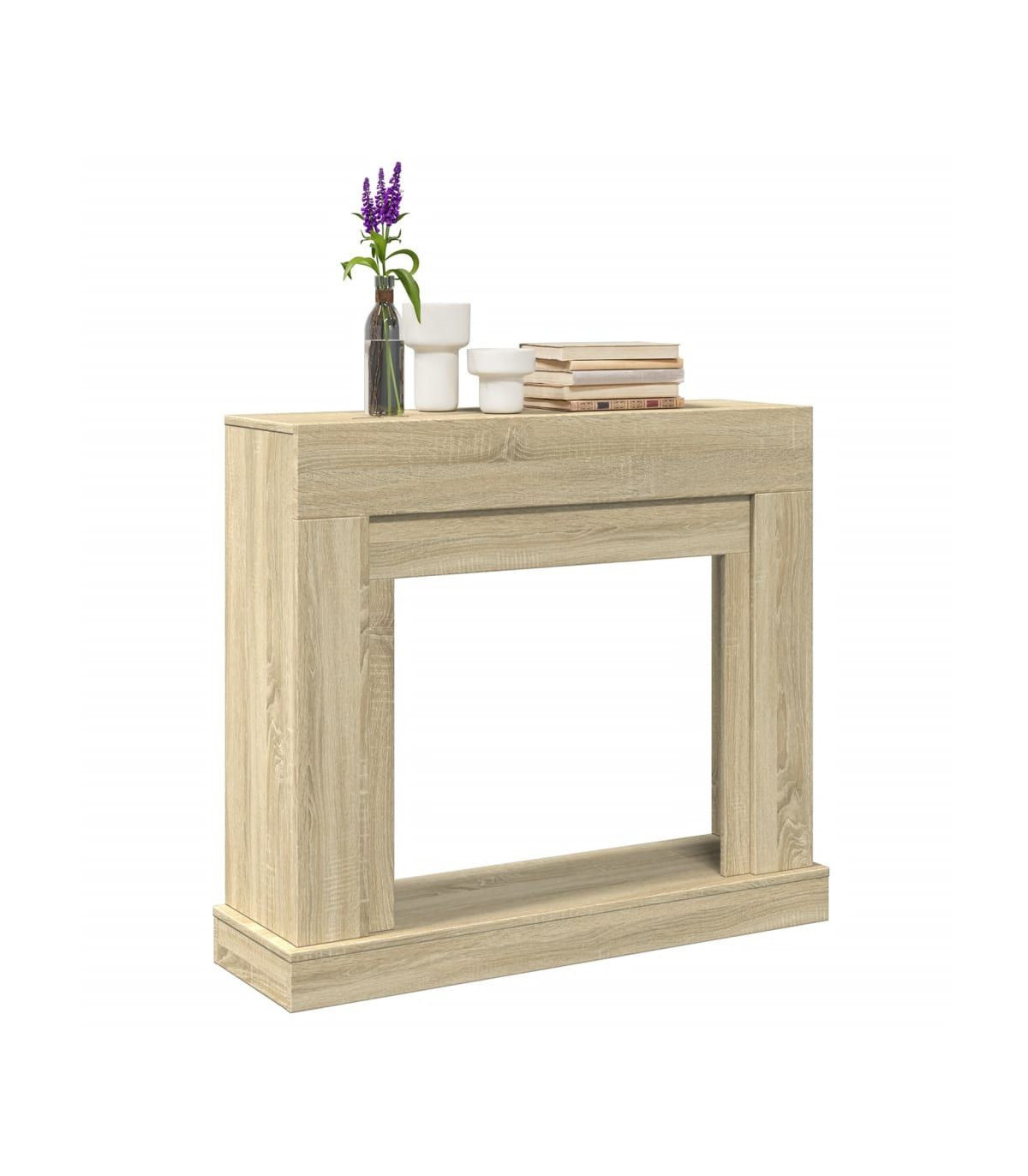 The fireplace surround is a decorative and functional element that is adapted to an electric flame, providing both aesthetic appeal and a safety barrier. Stable and durable material: Engineered wood is a durable and stable material with a smooth surface that is resistant to moisture, warping, and splitting, making it a reliable choice for various projects.Functional shelf: The top shelf of the fireplace mantel serves as a practical mantel, perfect for displaying photo frames, flowers, and other decorative items.Compatible with LED flame: Enjoy the warmth and ambience of a fire place without the hassle of traditional maintenance or safety concerns.Easy maintenance: Thanks to its smooth surface, the fireplace frame is easy to clean with a damp cloth and requires less maintenance. Warning:This fireplace surround is designed exclusively for use with LED flames and is not suitable for real flames.To prevent it from tipping over, this product must be used with the provided wall attachment device. Good to know:Screws and plugs for inside the wall are not included. We advise you to find and use screws and plugs suitable specifically for your walls. If you're not sure, you can consult with a professional. Please read and follow each step of the instructions.