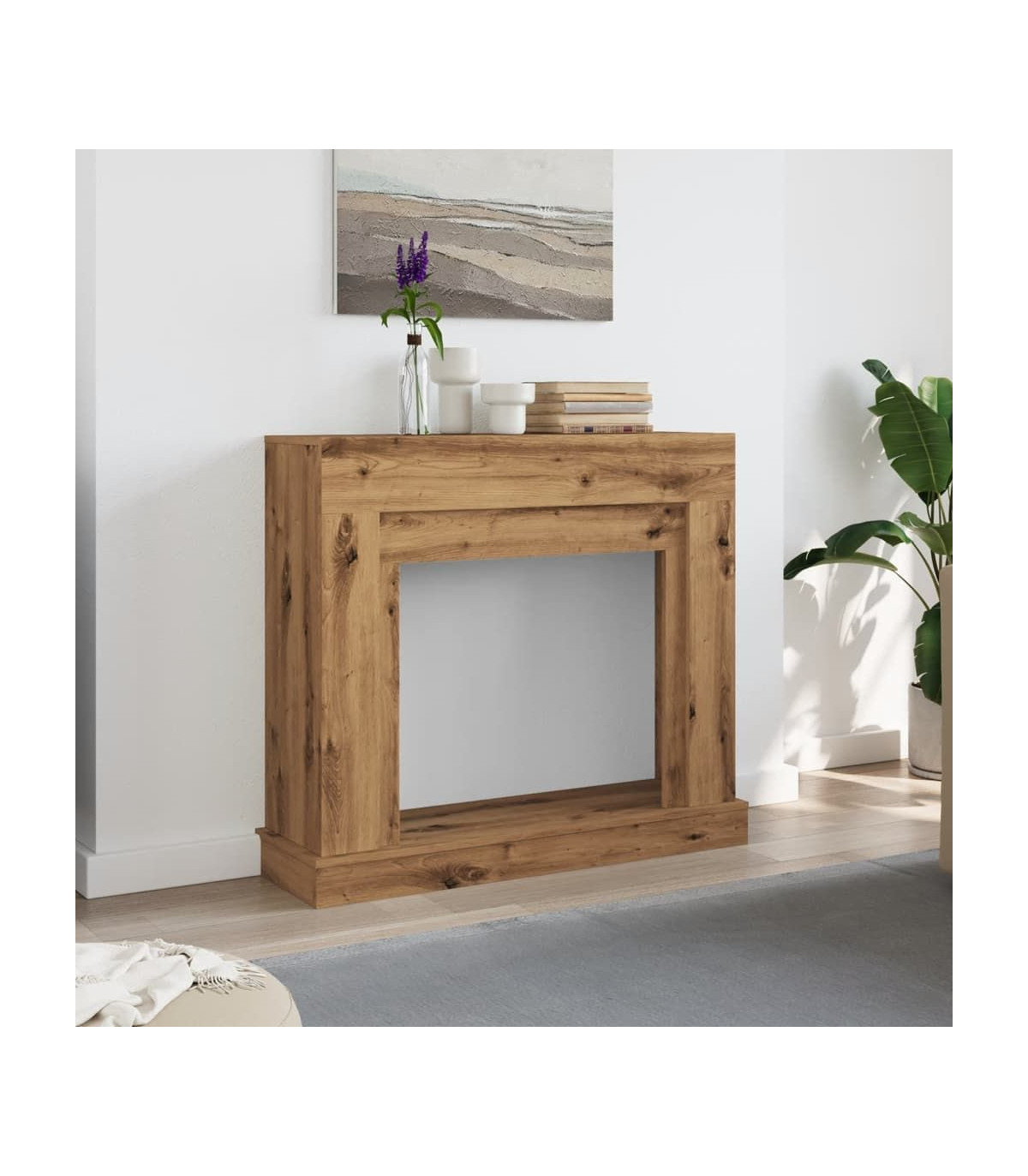 The fireplace surround is a decorative and functional element that is adapted to an electric flame, providing both aesthetic appeal and a safety barrier. Stable and durable material: Engineered wood is a durable and stable material with a smooth surface that is resistant to moisture, warping, and splitting, making it a reliable choice for various projects.Functional shelf: The top shelf of the fireplace mantel serves as a practical mantel, perfect for displaying photo frames, flowers, and other decorative items.Compatible with LED flame: Enjoy the warmth and ambience of a fire place without the hassle of traditional maintenance or safety concerns.Easy maintenance: Thanks to its smooth surface, the fireplace frame is easy to clean with a damp cloth and requires less maintenance. Warning:This fireplace surround is designed exclusively for use with LED flames and is not suitable for real flames.To prevent it from tipping over, this product must be used with the provided wall attachment device. Good to know:Screws and plugs for inside the wall are not included. We advise you to find and use screws and plugs suitable specifically for your walls. If you're not sure, you can consult with a professional. Please read and follow each step of the instructions.
