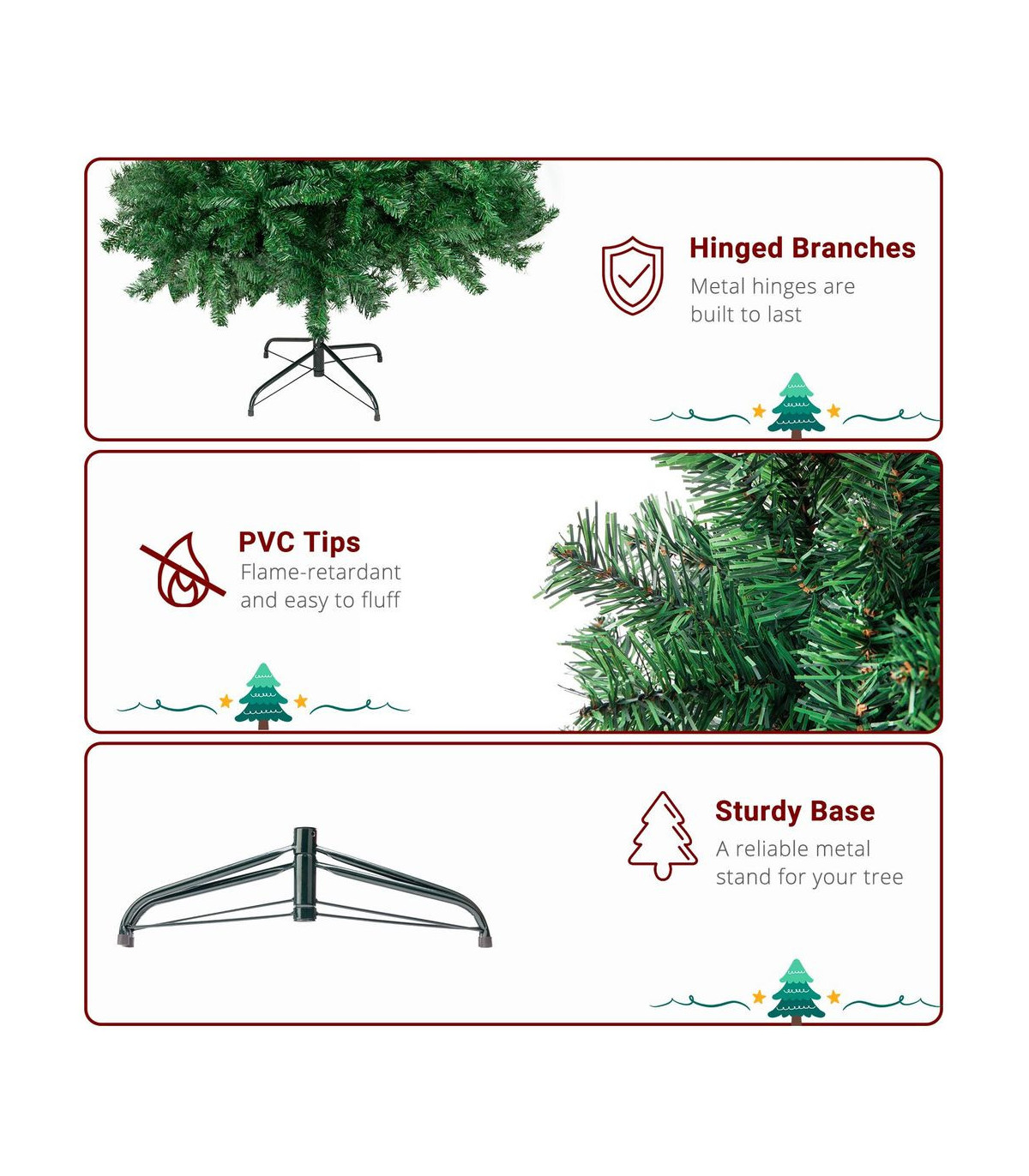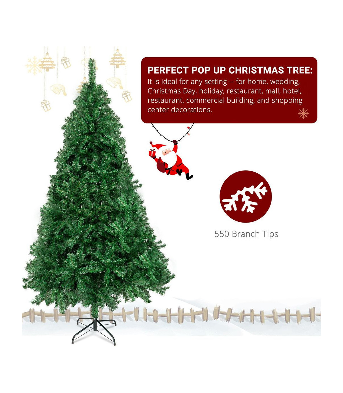 Christmas tree is the necessary part when we celebrate our Christmas Day. Everyone will take a Christmas tree back home and make it beautiful to express their wonderful mood. Do you also expect a Christmas tree? Come to pay attention to this 6FT Christmas Tree! It is a new bright spot in home decorating for Christmas night. Adopting superior PVC material as well as fine workmanship, this tree is of great durability. You can adorn some decorative light strips on the tree to make it shiny and brilliant. Your dear families will be delightful on that day!