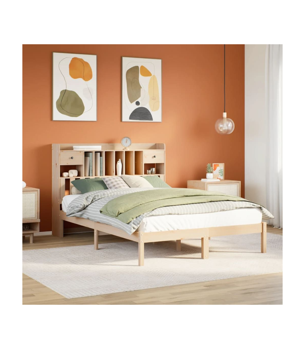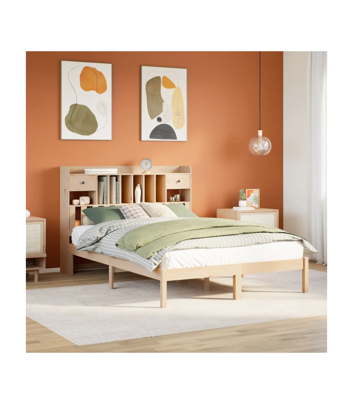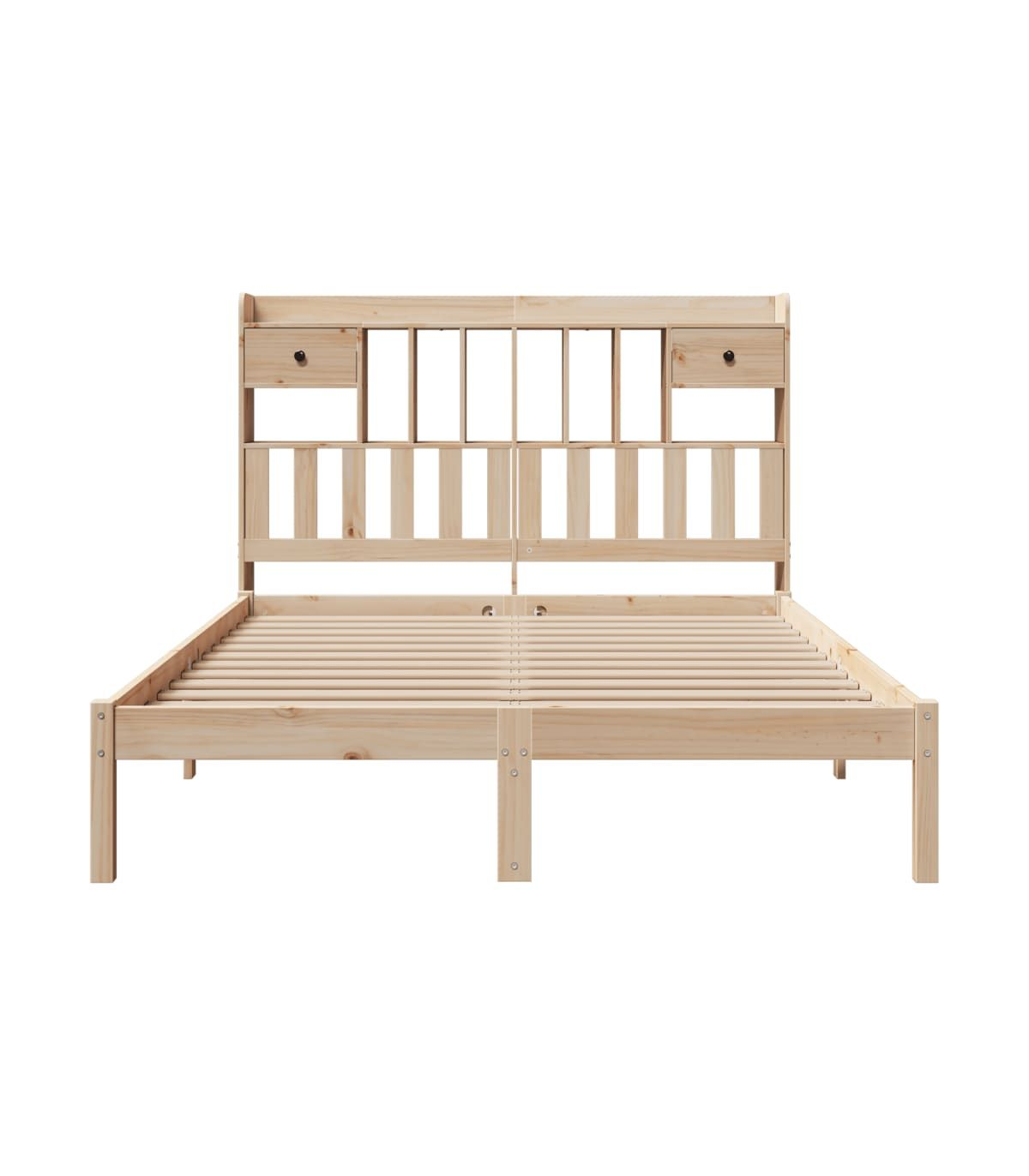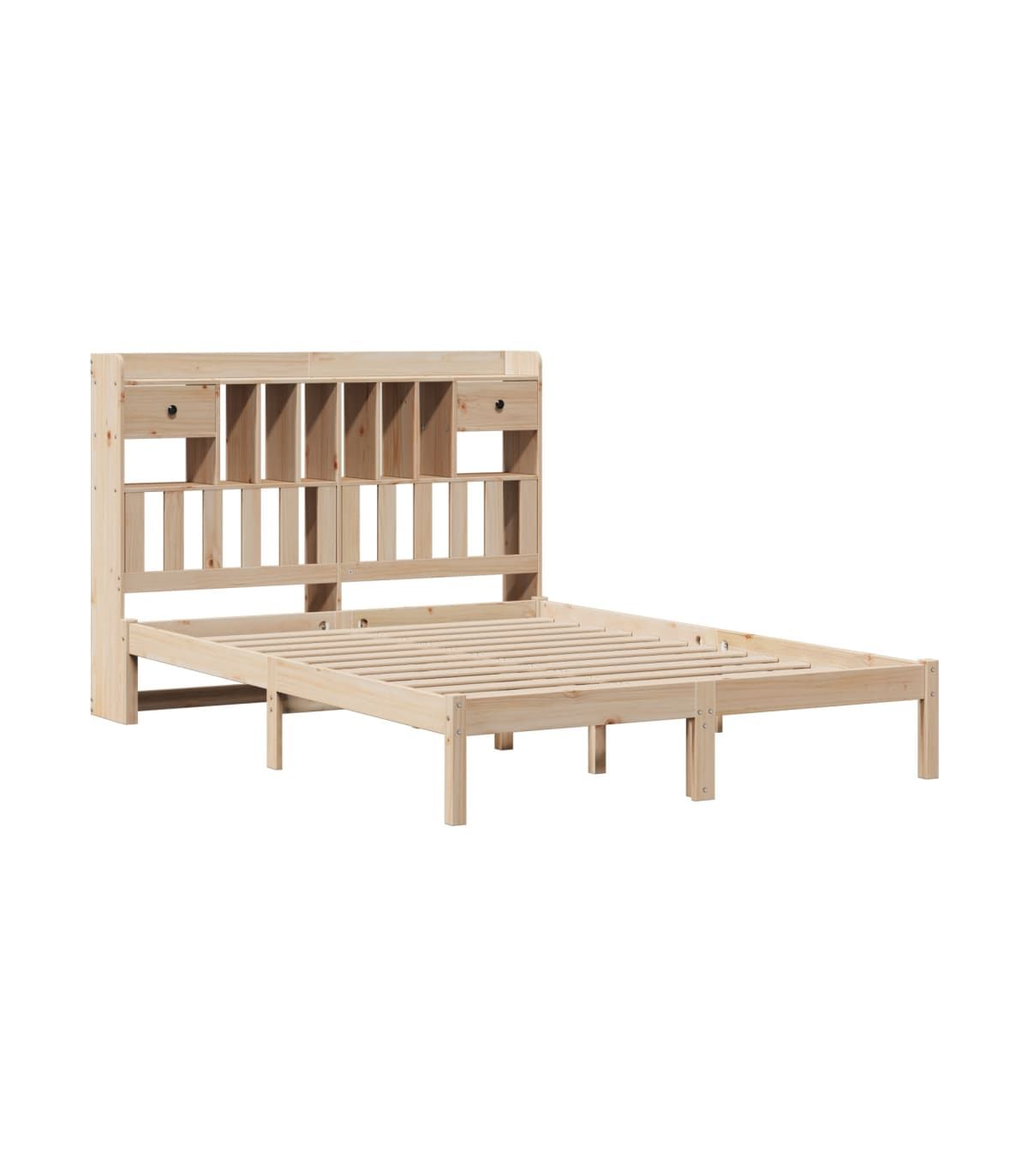 Get a better restful night's sleep from this bookcase bed! It makes a welcoming addition to any bedroom. Stable and long-lasting frame: Solid pinewood is known for its strength and durability. Its straight grains and distinctive knots contribute to its rustic charm.Slatted base for optimal support: The bed frame is equipped with a slatted base for support and breathability for your mattress.Ample storage space: This bookcase headboard offers ample storage space to keep books, decorative items, or personal belongings within easy reach, reducing clutter in the bedroom.Space saving: This headboard is a space-saving option that can replace the need for a bedside table, helping maximise your bedroom space, and making it ideal for small or limited spaces. Good to know:A mattress is not included with this bed. We do offer a various selection of mattresses. You can check our shop for a matching mattress.