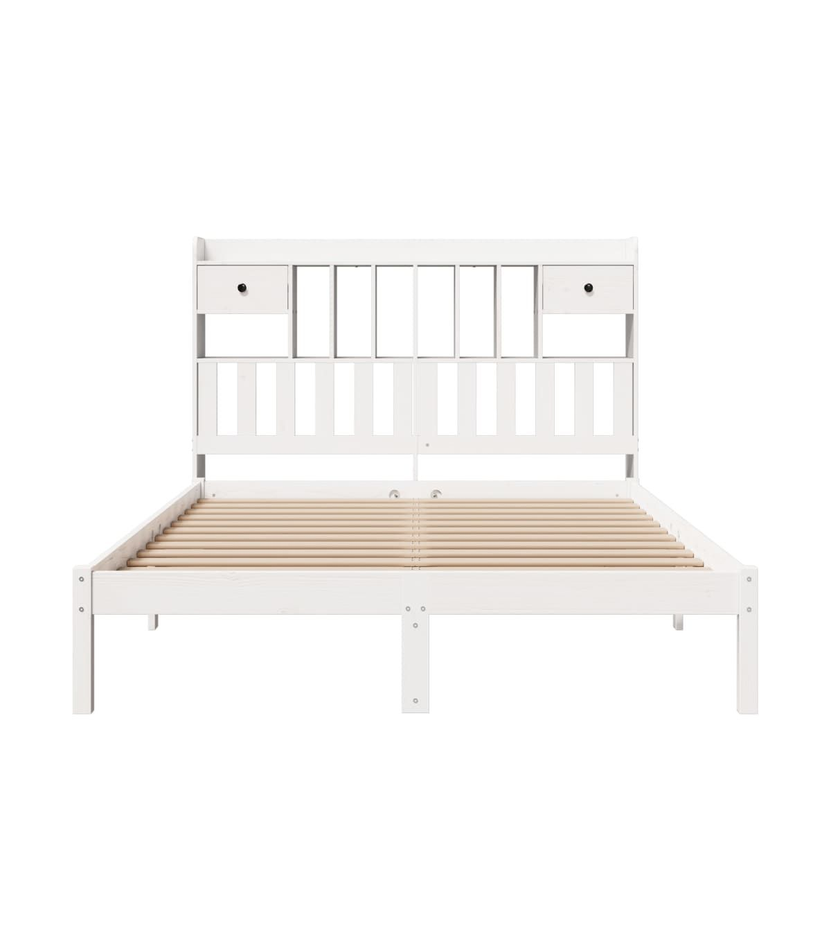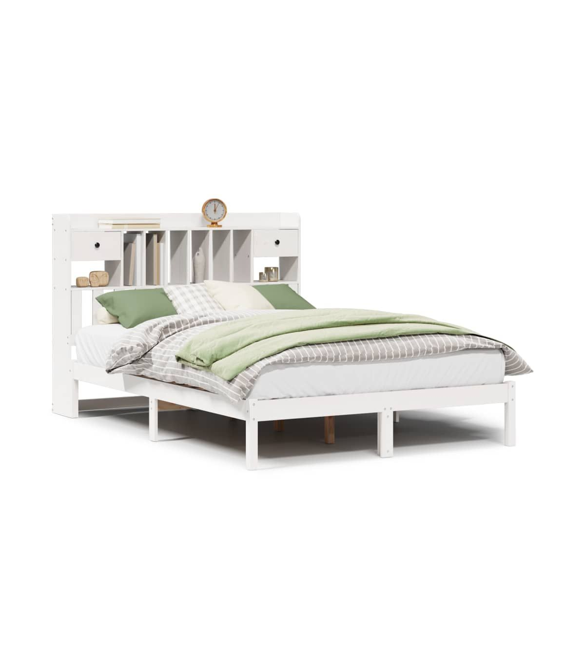 Get a better restful night's sleep from this bookcase bed! It makes a welcoming addition to any bedroom. Stable and long-lasting frame: Solid pinewood is known for its strength and durability. Its straight grains and distinctive knots contribute to its rustic charm.Slatted base for optimal support: The bed frame is equipped with a slatted base for support and breathability for your mattress.Ample storage space: This bookcase headboard offers ample storage space to keep books, decorative items, or personal belongings within easy reach, reducing clutter in the bedroom.Space saving: This headboard is a space-saving option that can replace the need for a bedside table, helping maximise your bedroom space, and making it ideal for small or limited spaces. Good to know:A mattress is not included with this bed. We do offer a various selection of mattresses. You can check our shop for a matching mattress.