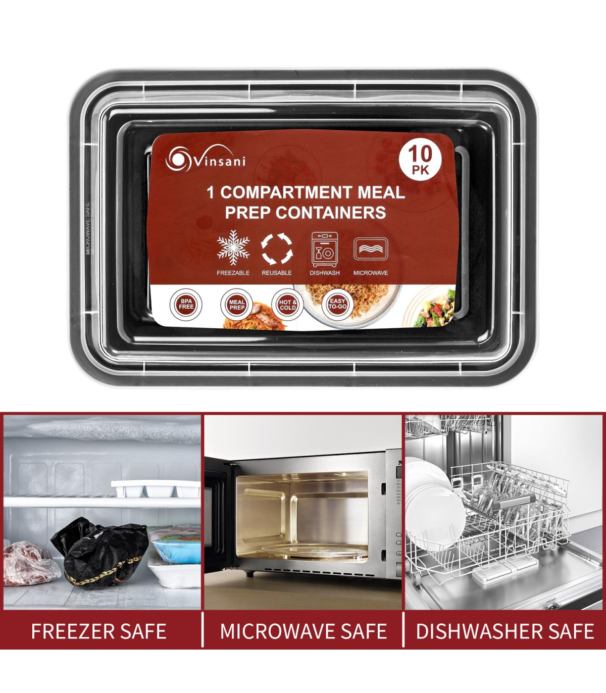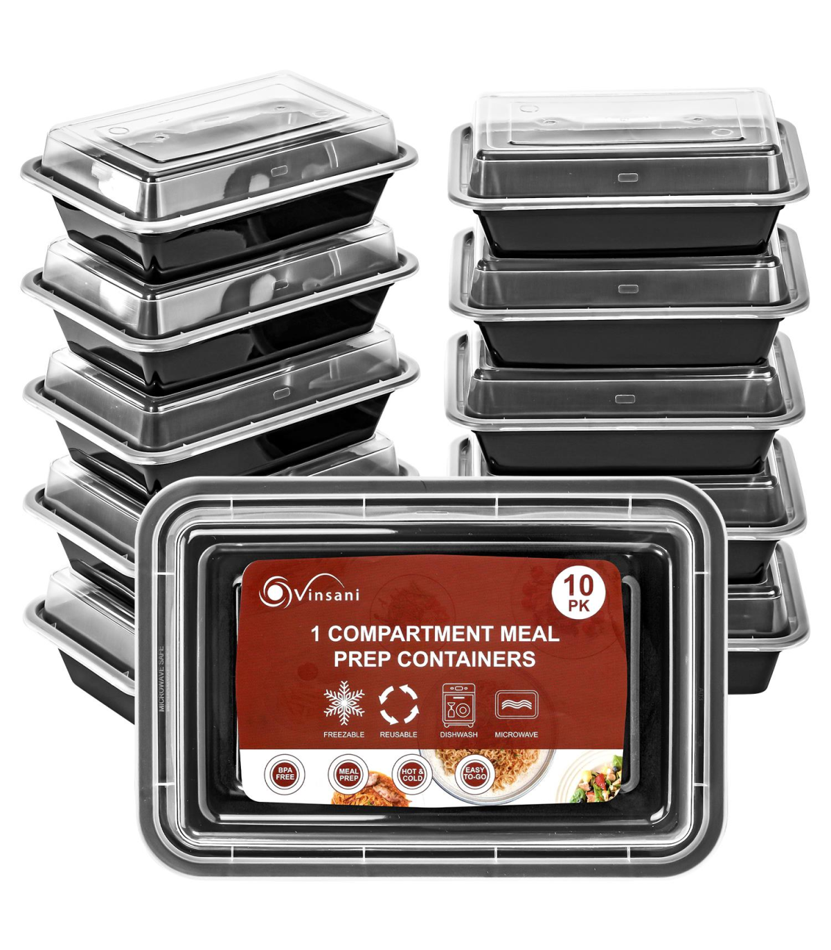 VINSANI 10pk 1 COMPARTMENT MEAL PREP CONTAINERS 1010423