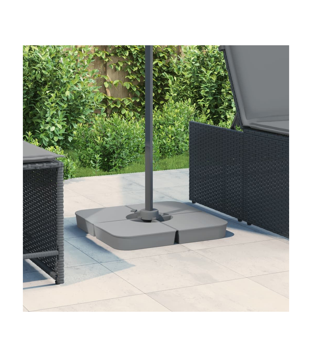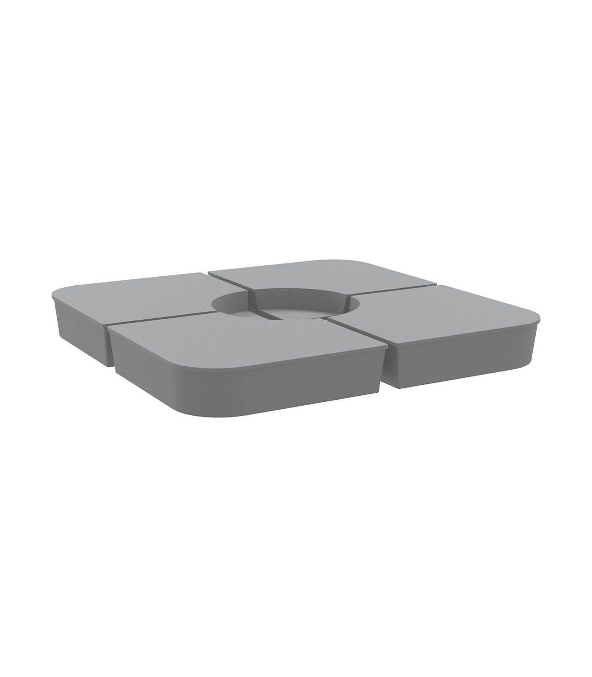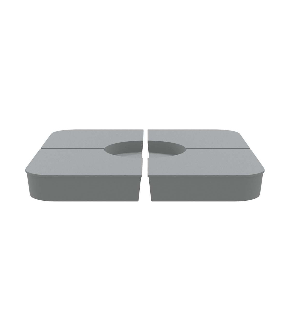 This parasol base set offers a sturdy and reliable foundation to ensure your umbrella remains stable and upright. Durable material: The parasol base is made of polypropylene to ensure high durability, wearability, and longevity.Enhanced stability: Fill the base with the amount of sand that suits your needs to create a reliable foundation, ensuring your umbrella stays securely in place. Each individual base with sand is 25 kg, and the total should be up to 100 kg.Easy to use: This parasol base set consists of four plates that can simply be put together to fix your crossbar base (not included). With a wide opening, the parasol base is simple to fill or empty with sand.Detachable and portable: Thanks to its 4-plate design, this parasol base set is detachable when not in use and can be stacked for convenient transit.Wide applications: The parasol base set is suitable for poolside, patio, garden, or any outdoor space.