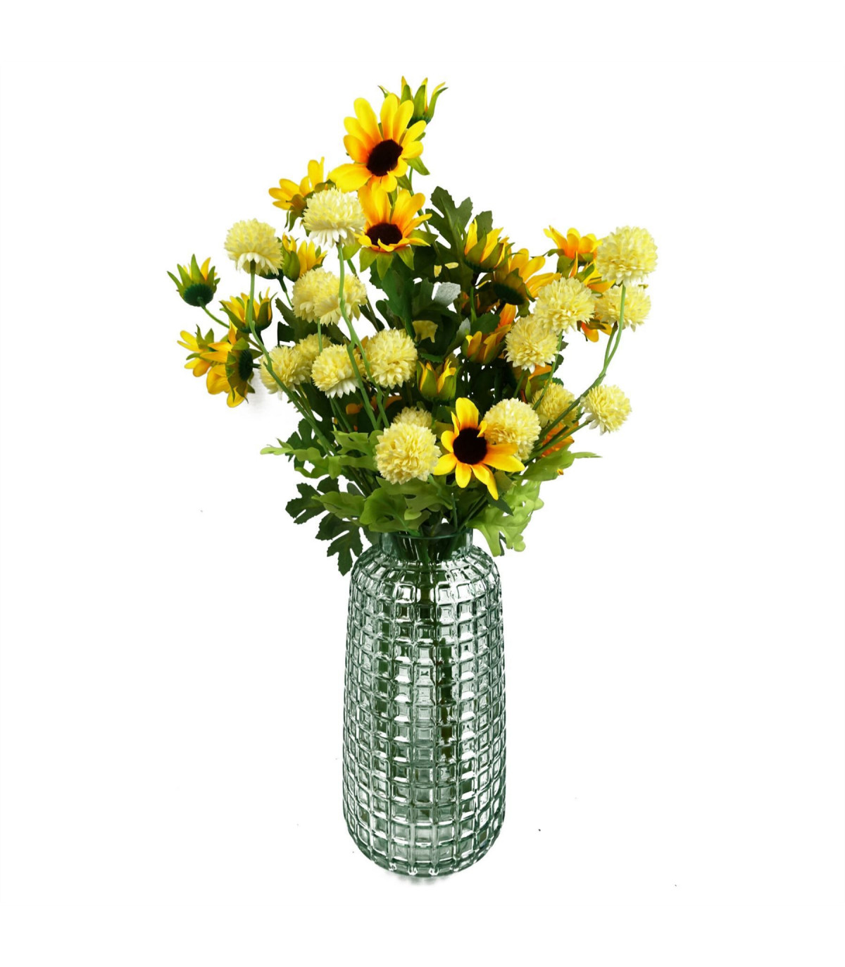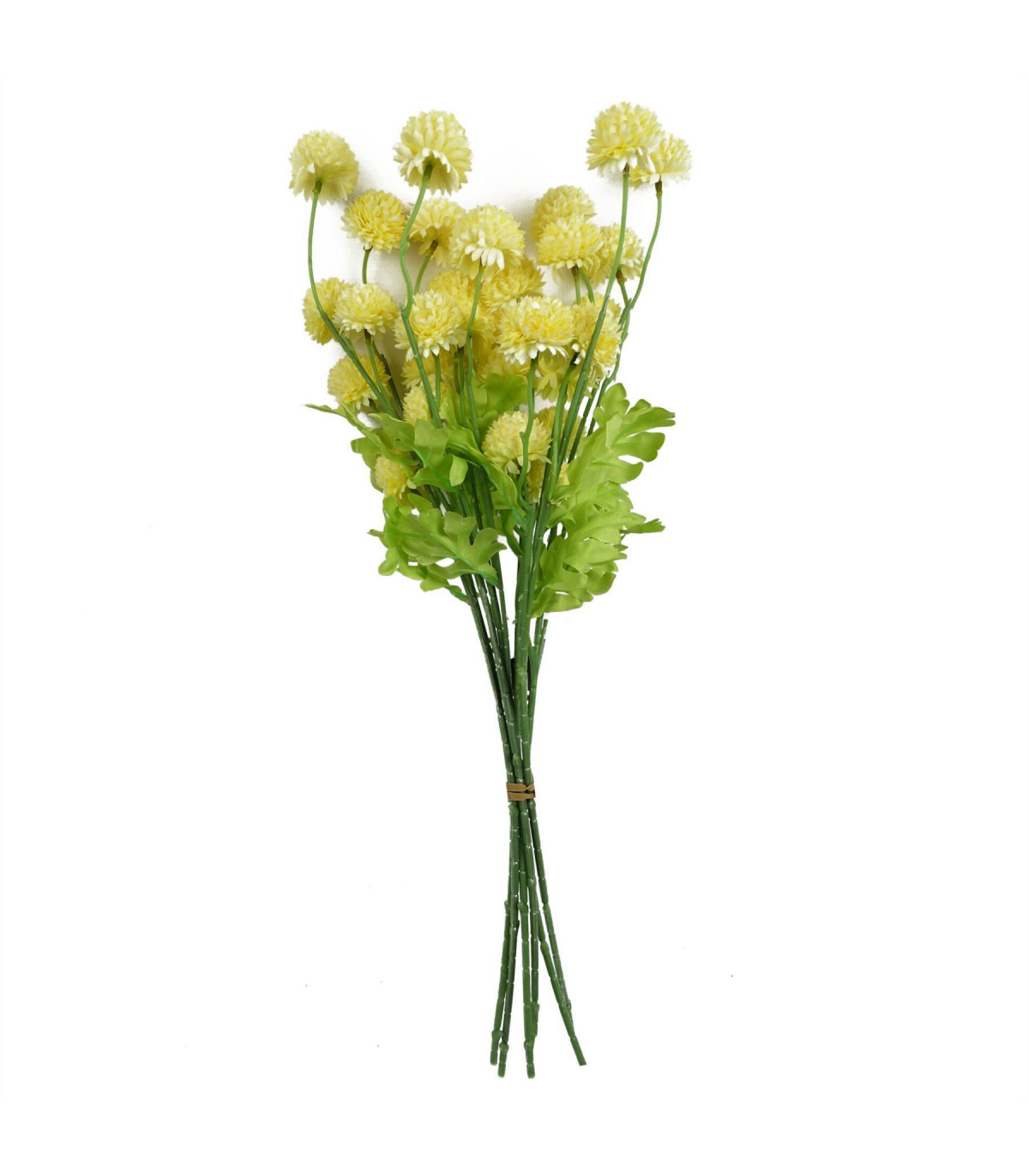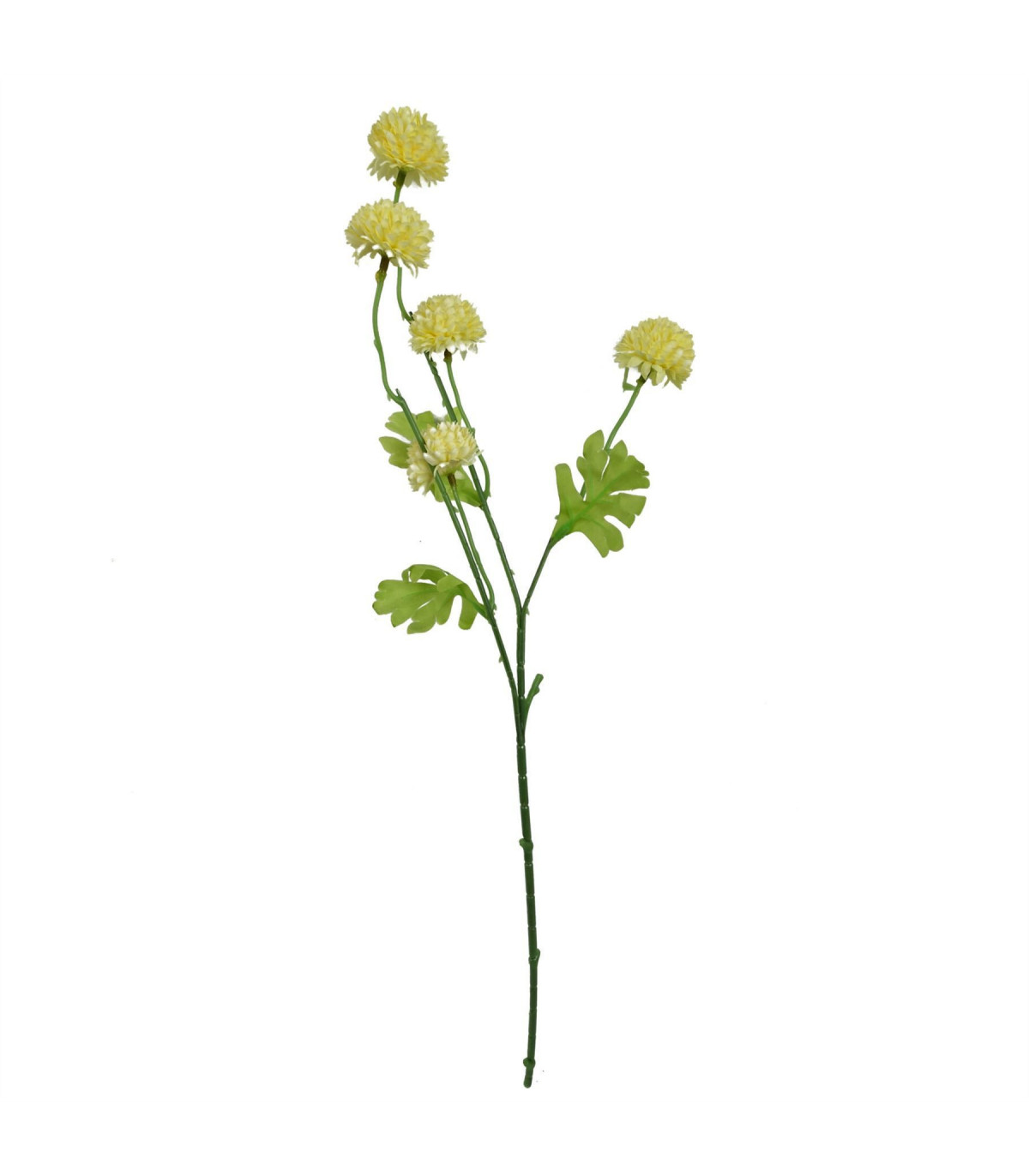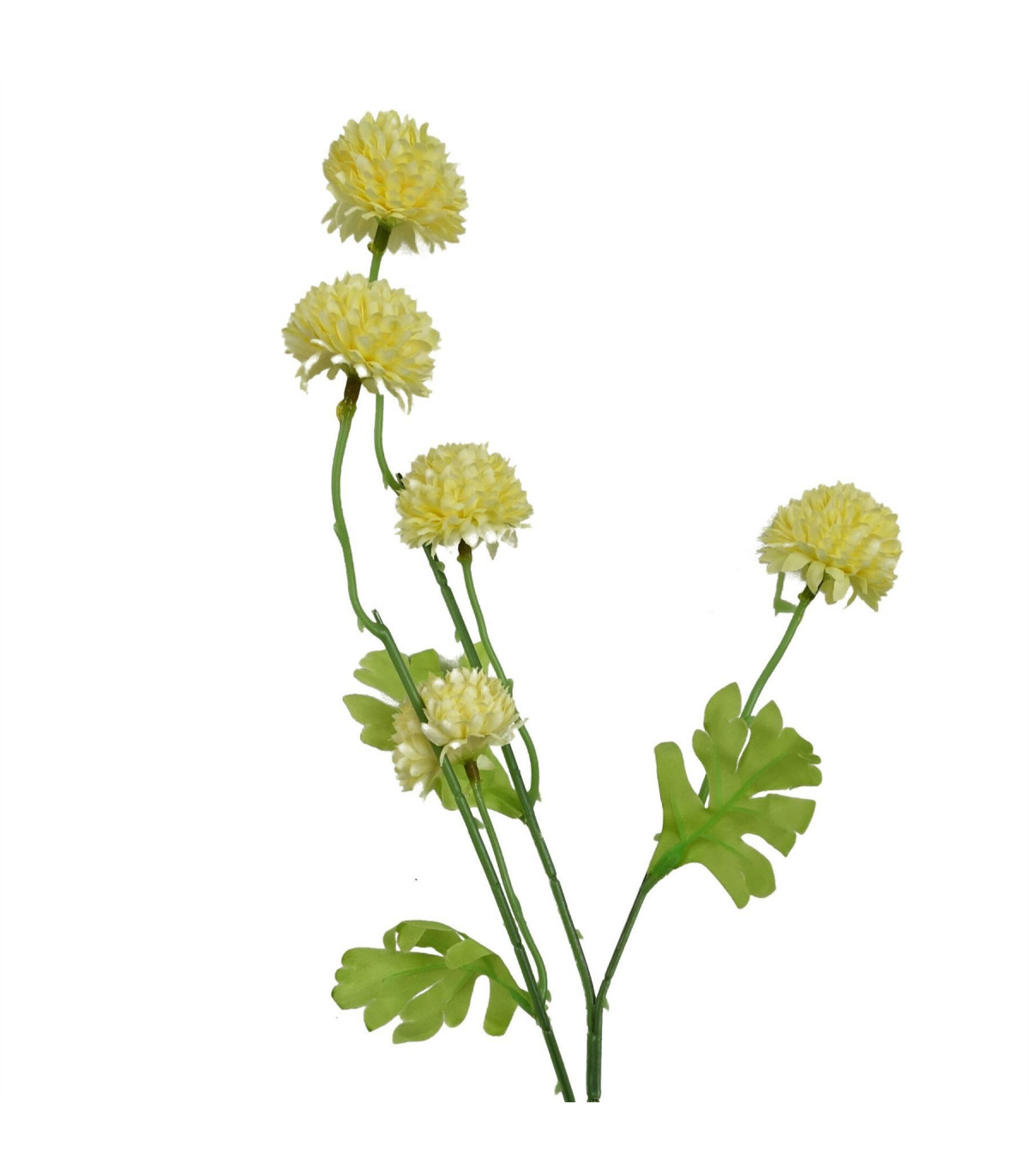 Enhance your floral arrangements with this 50cm artificial dahlia pompom spray in soft yellow. Crafted for realism, this high-quality flower stem is perfect for home decor, weddings, or special events, it requires no maintenance, has five blooms and also has wired stems to enable it to be arranged to suit. Combines well with our other flowers and foliage to make arrangements. Some of our photos show vases to give an idea of size and possibilities for arrangement, but no vases or planters are included with this foliage.