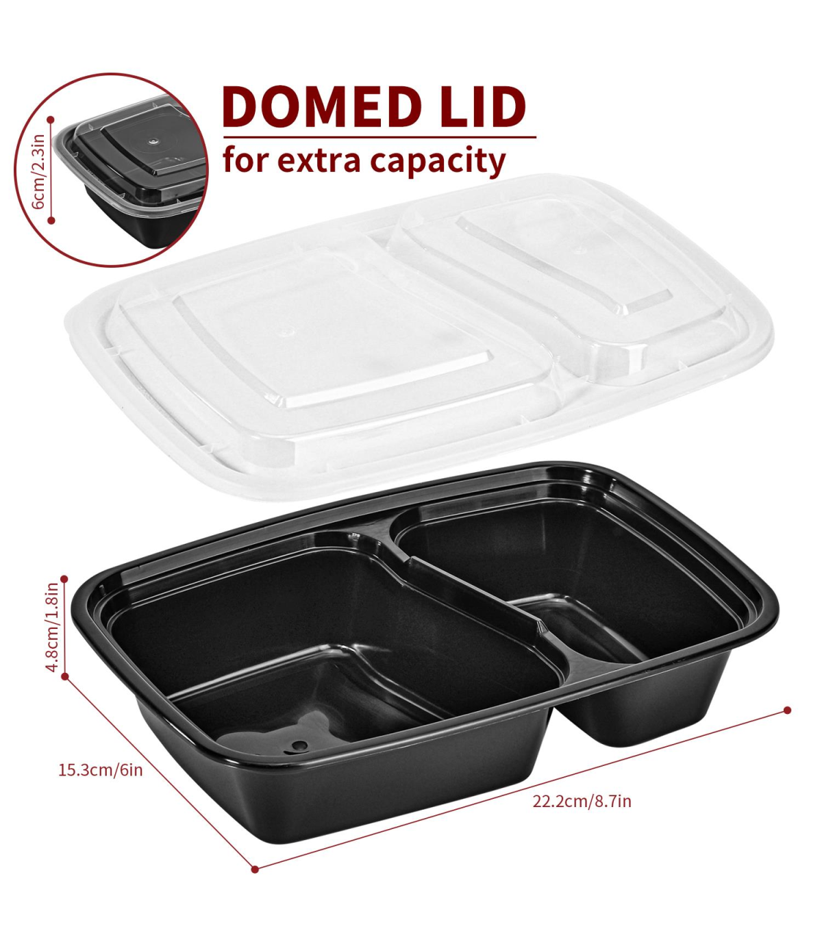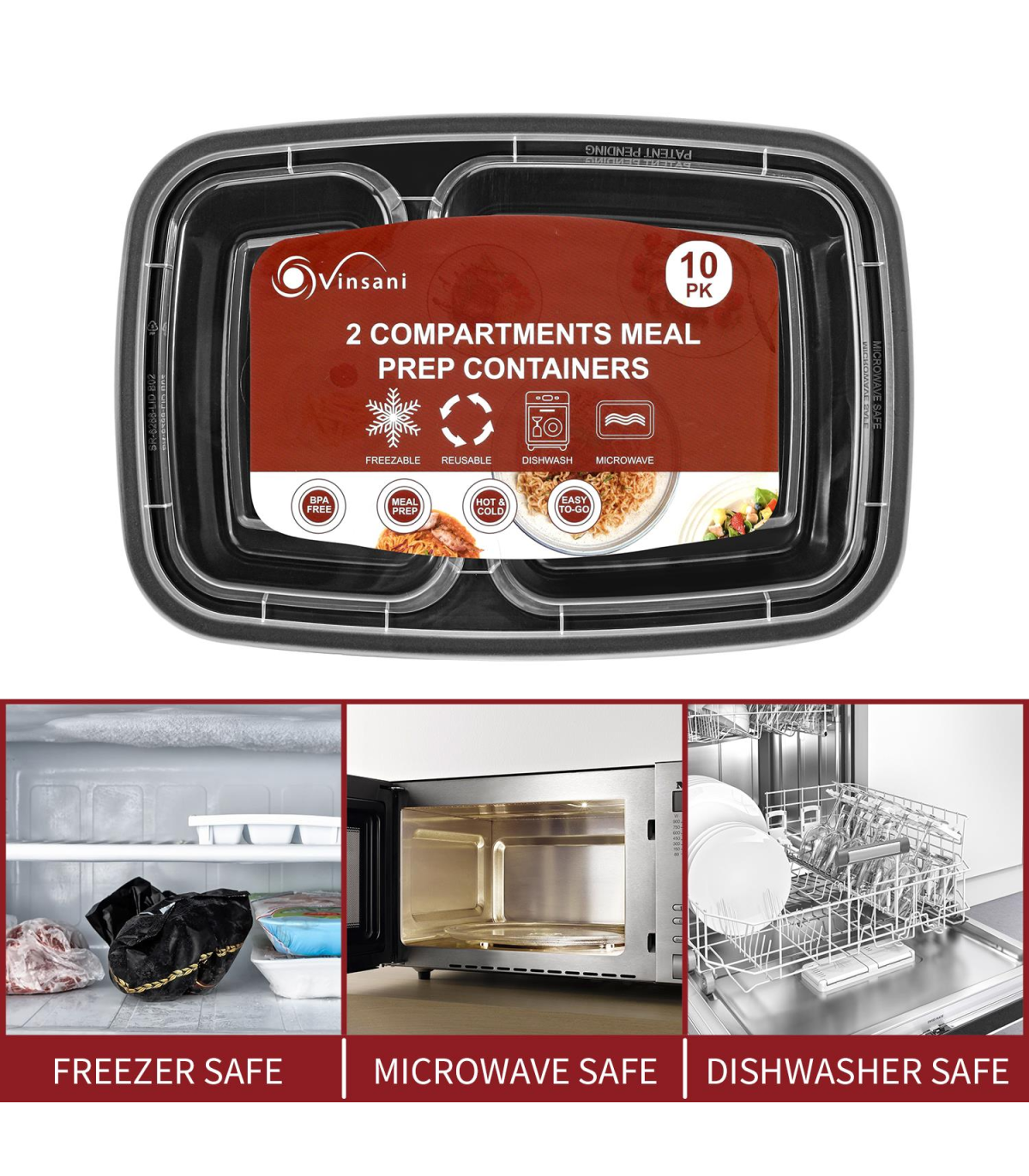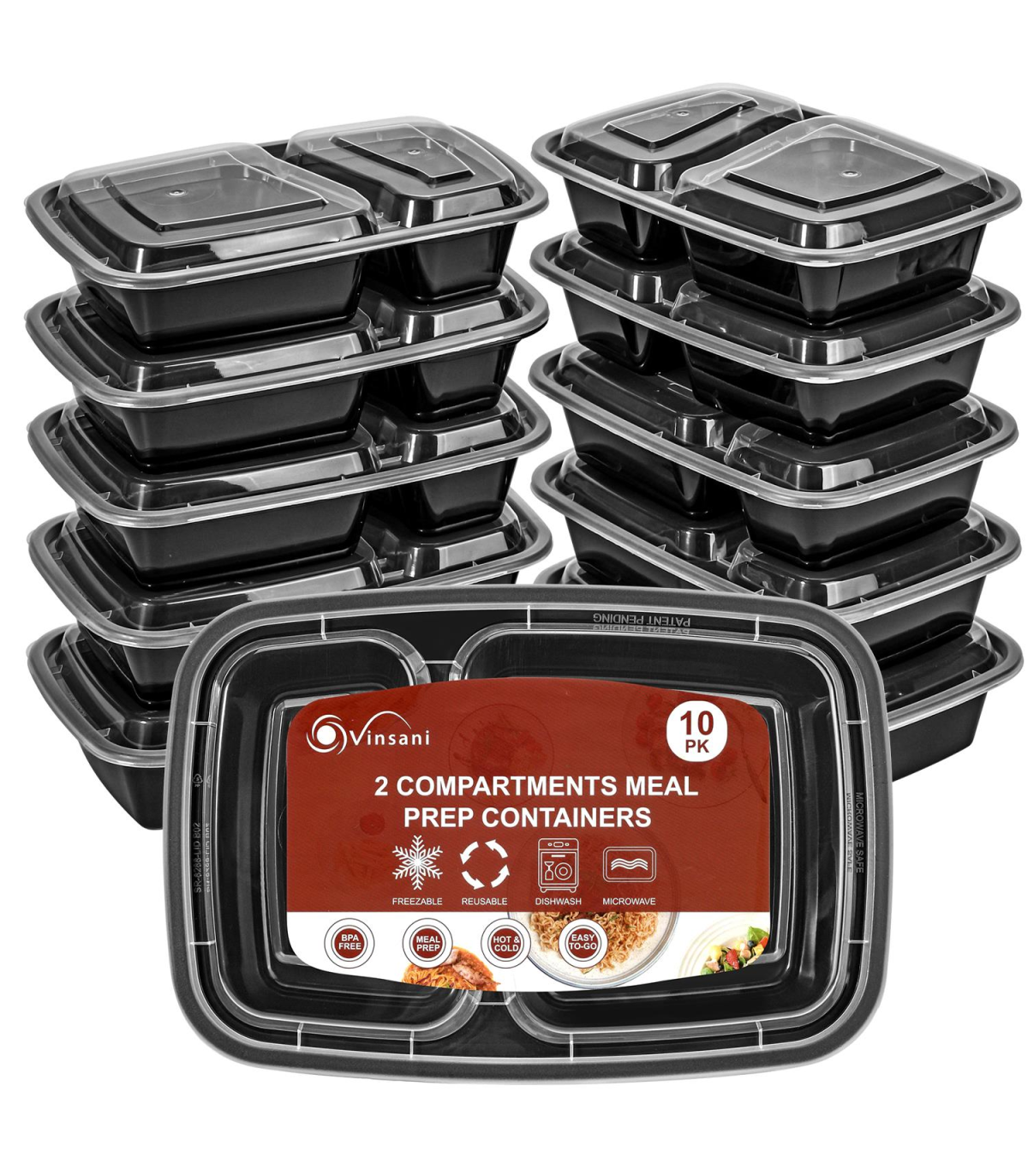 VINSANI 30pk 2 COMPARTMENTS MEAL PREP CONTAINERS 1010476