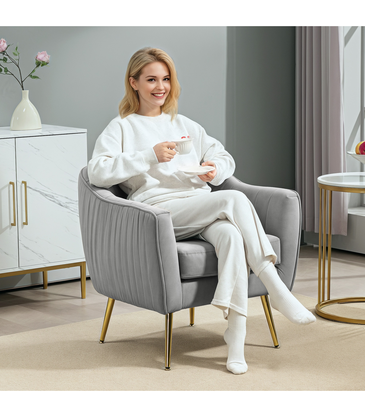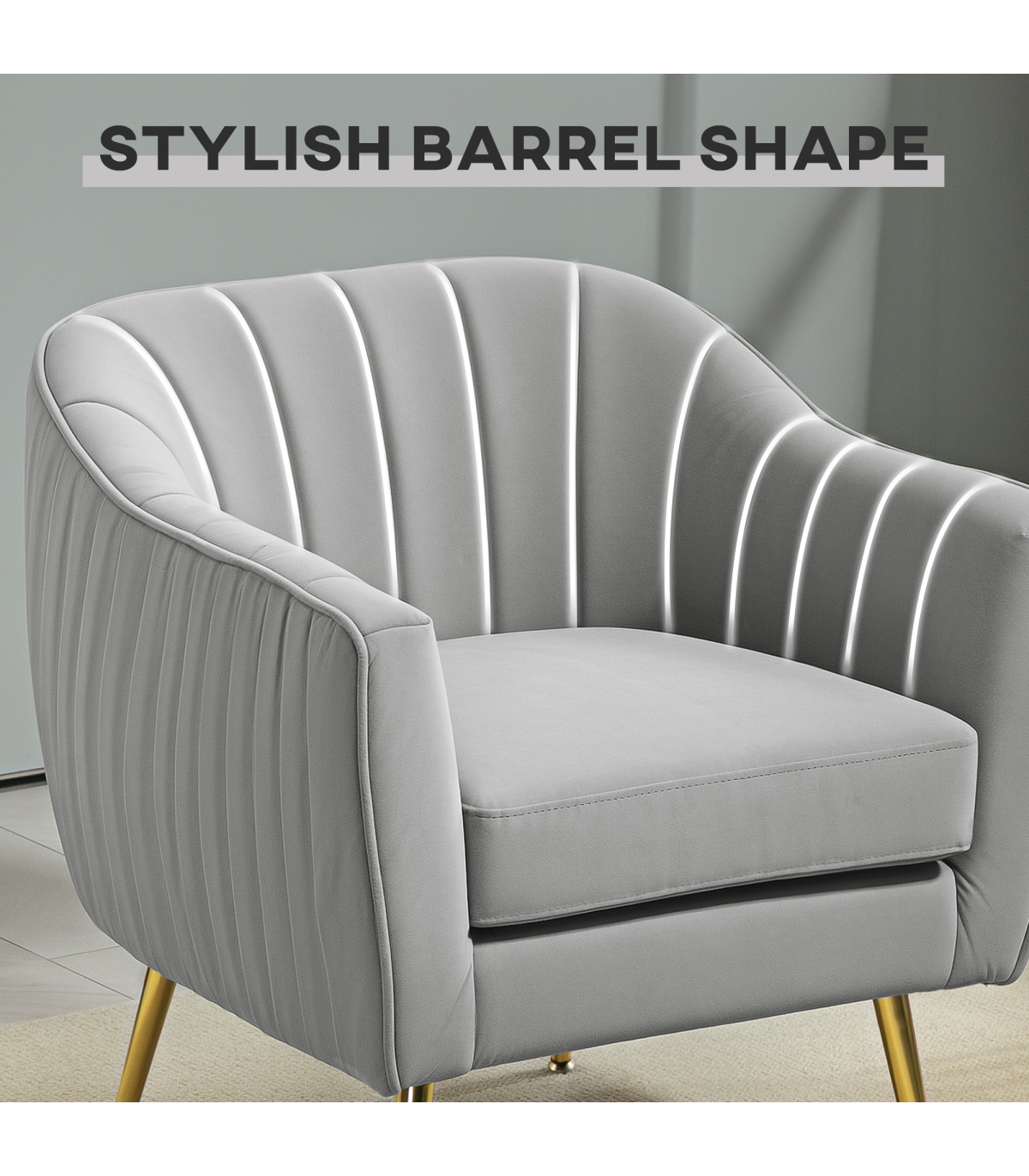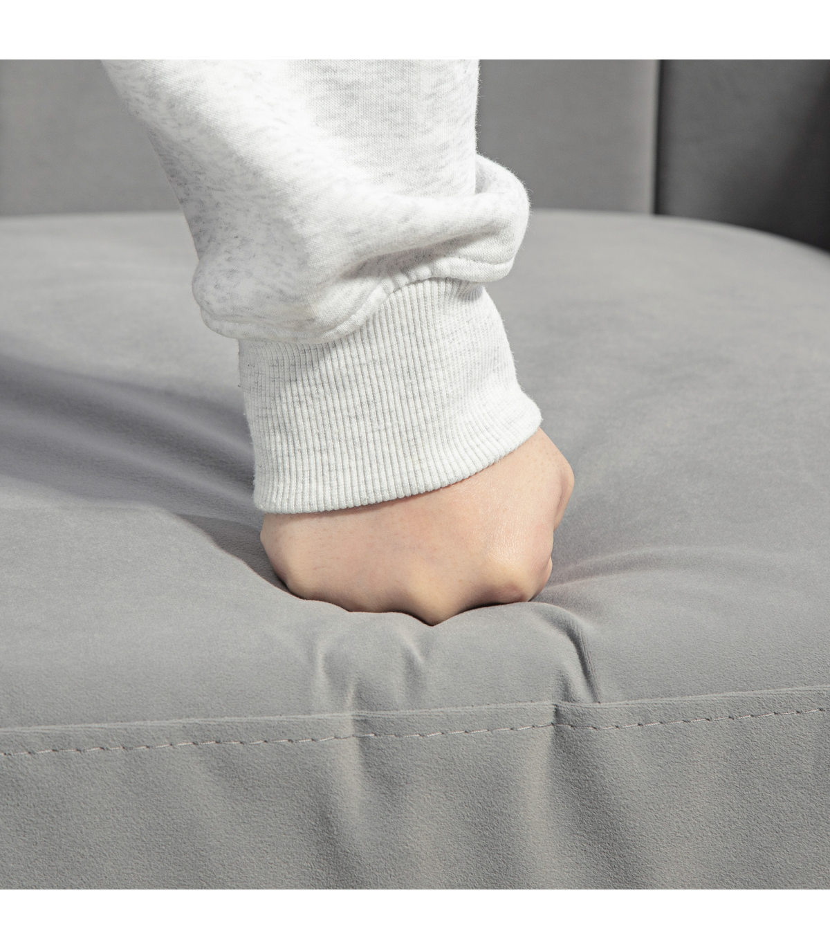● Velvet-feel upholstery, in a beautiful grey colour