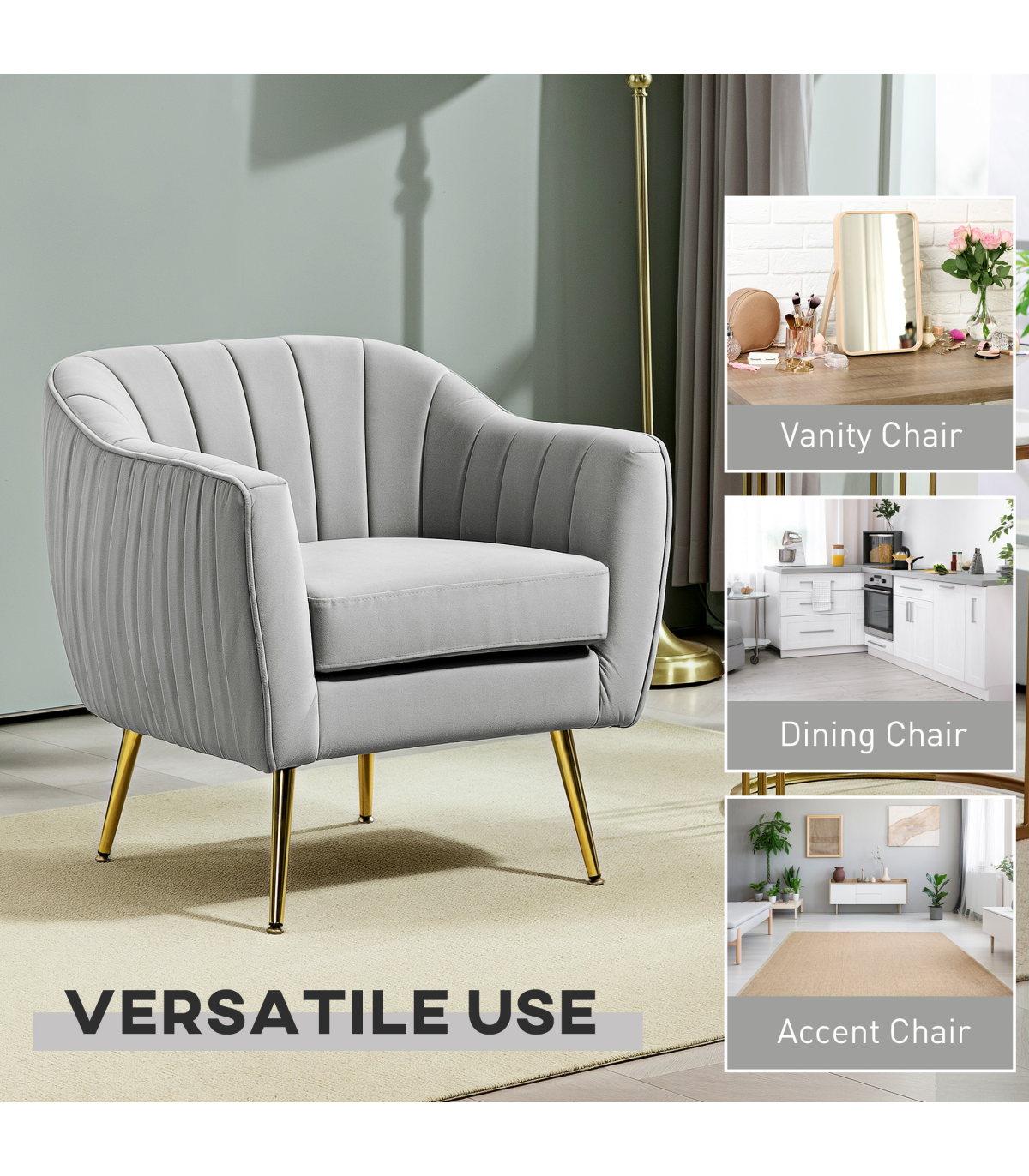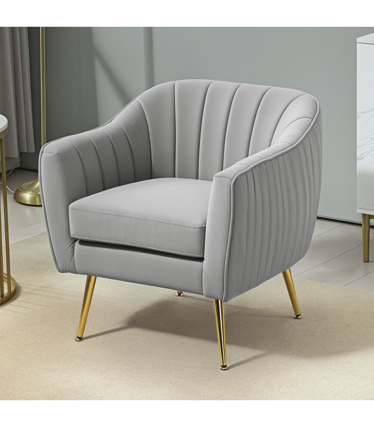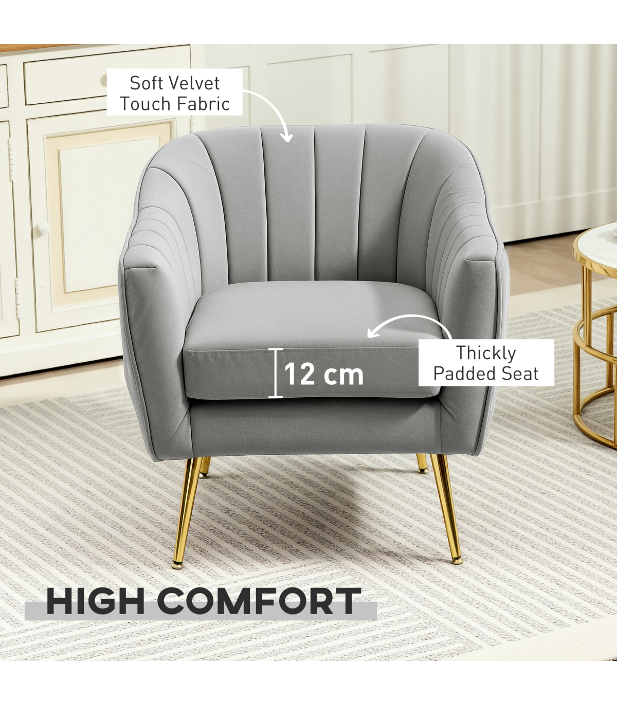 the grey colour effortlessly adds to the beauty. Metal legs for full support, it's completed with back indents for a shell-like appearance.