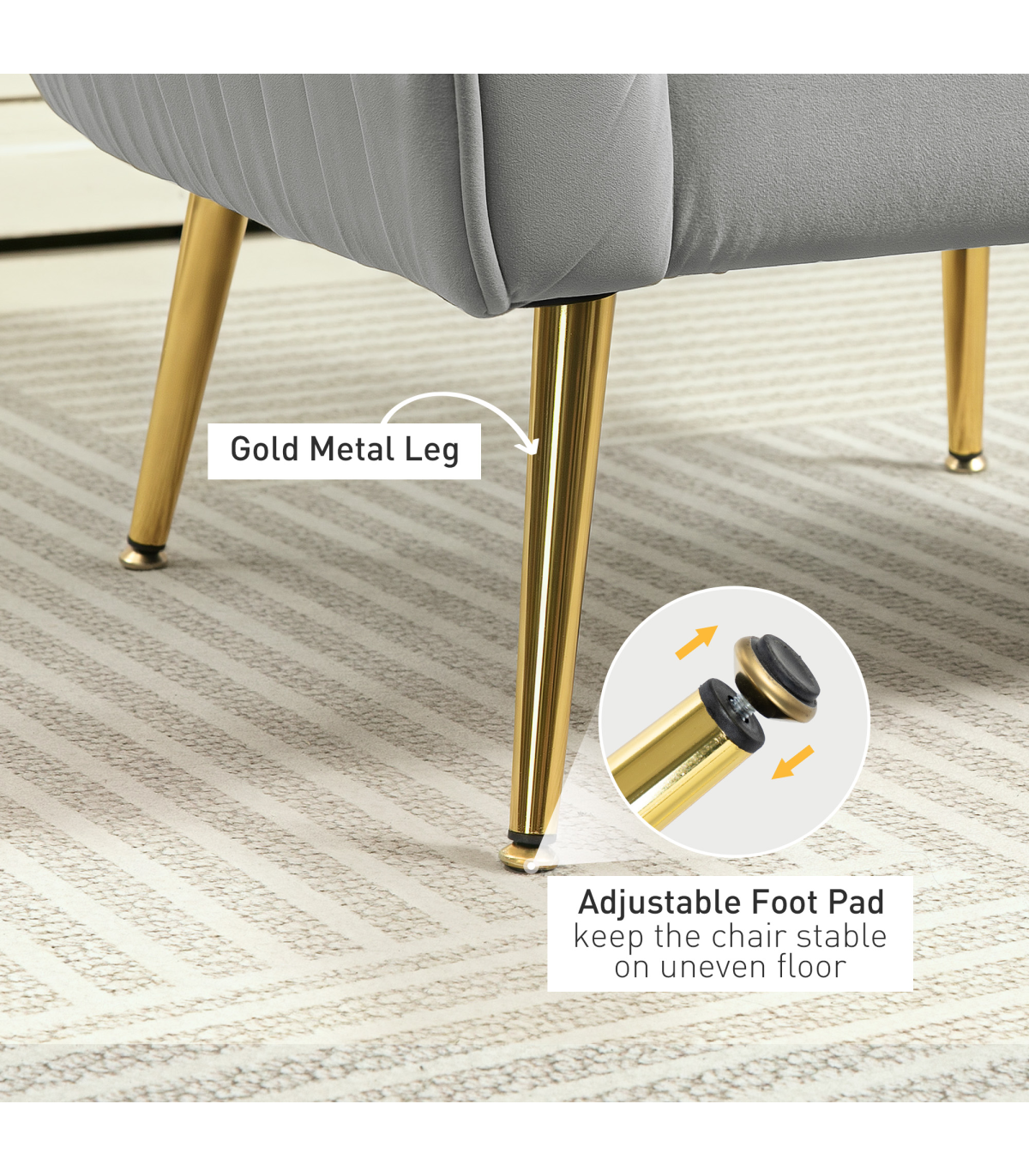 ● Metal legs with adjustable foot pads for support and balance