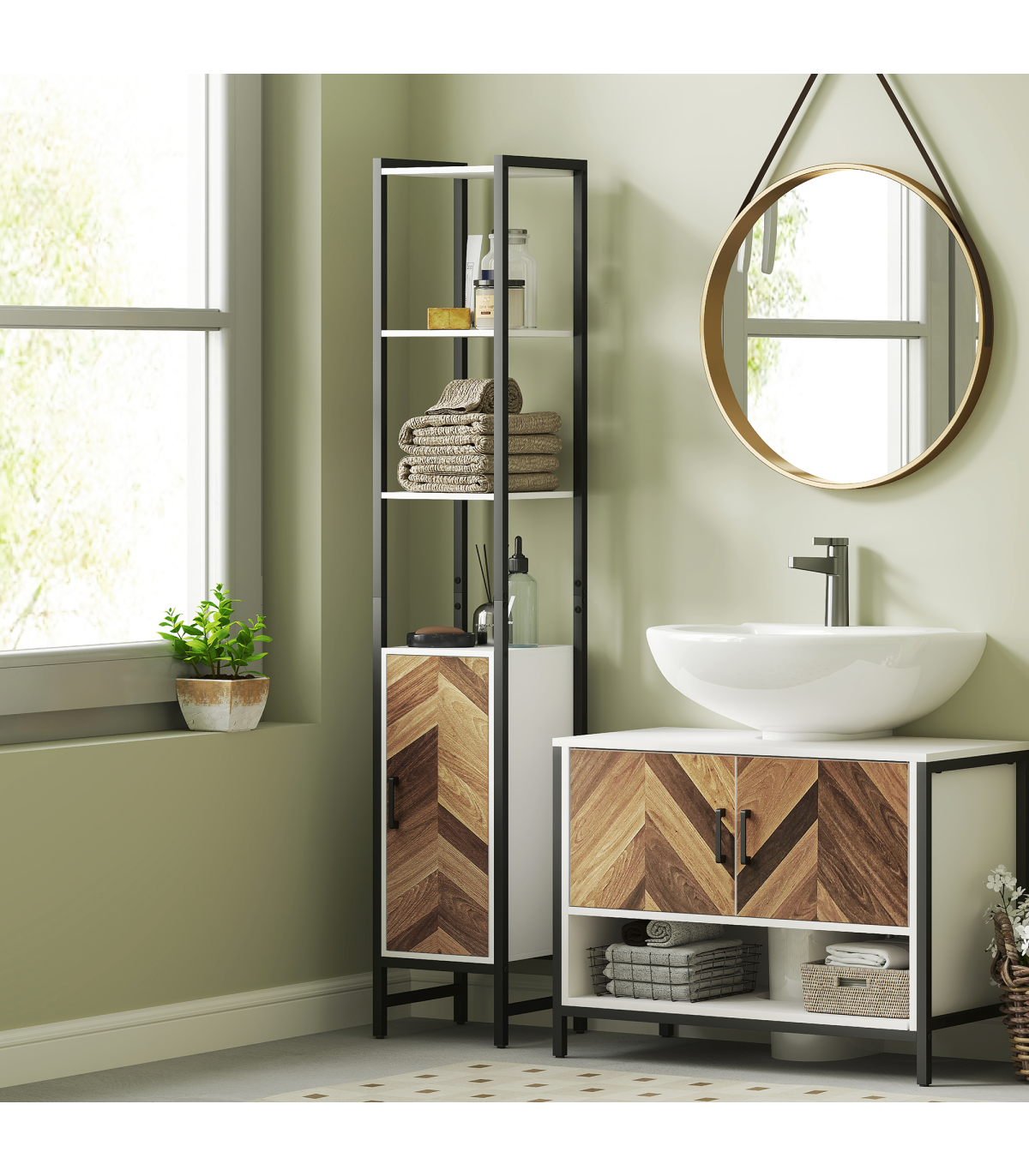 ● Colour blocked panels enhance both natural and rustic aesthetics