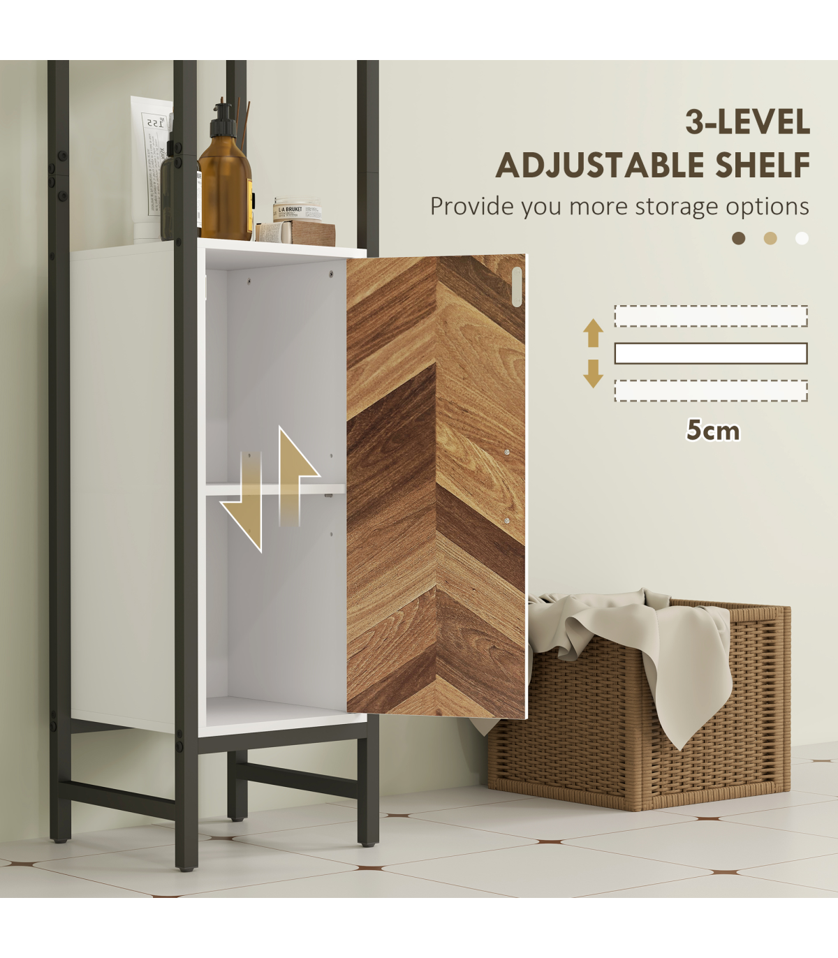 ● An three-level adjustable inner shelf in the cabinet