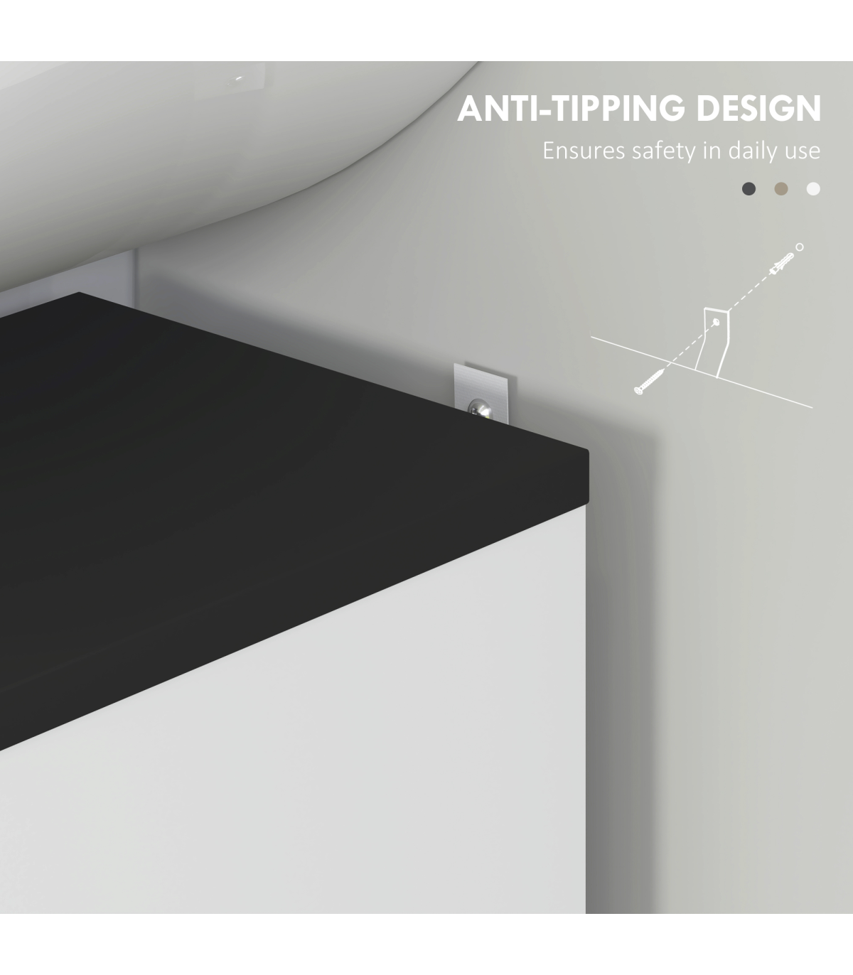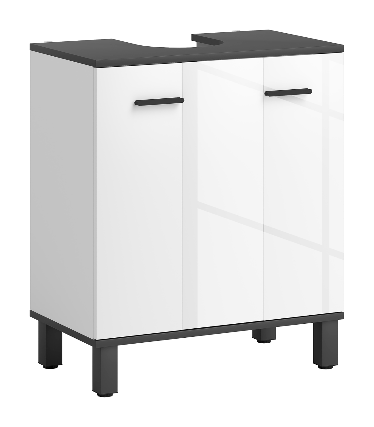 ● High gloss white finish paired with contrasting black upgrades your bathroom