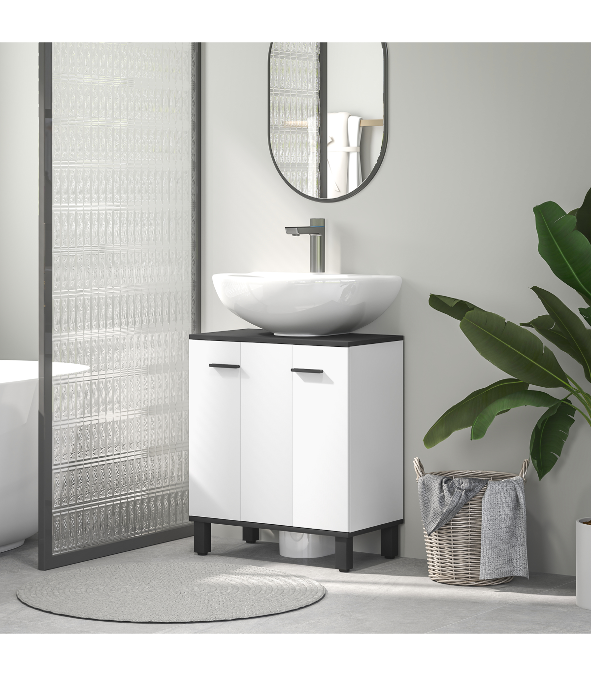 ● Three-level adjustable shelf maximises under sink bathroom storage