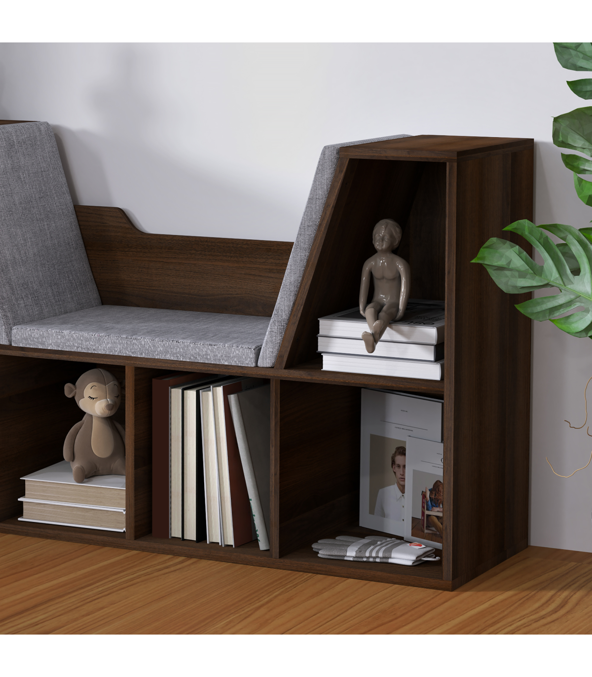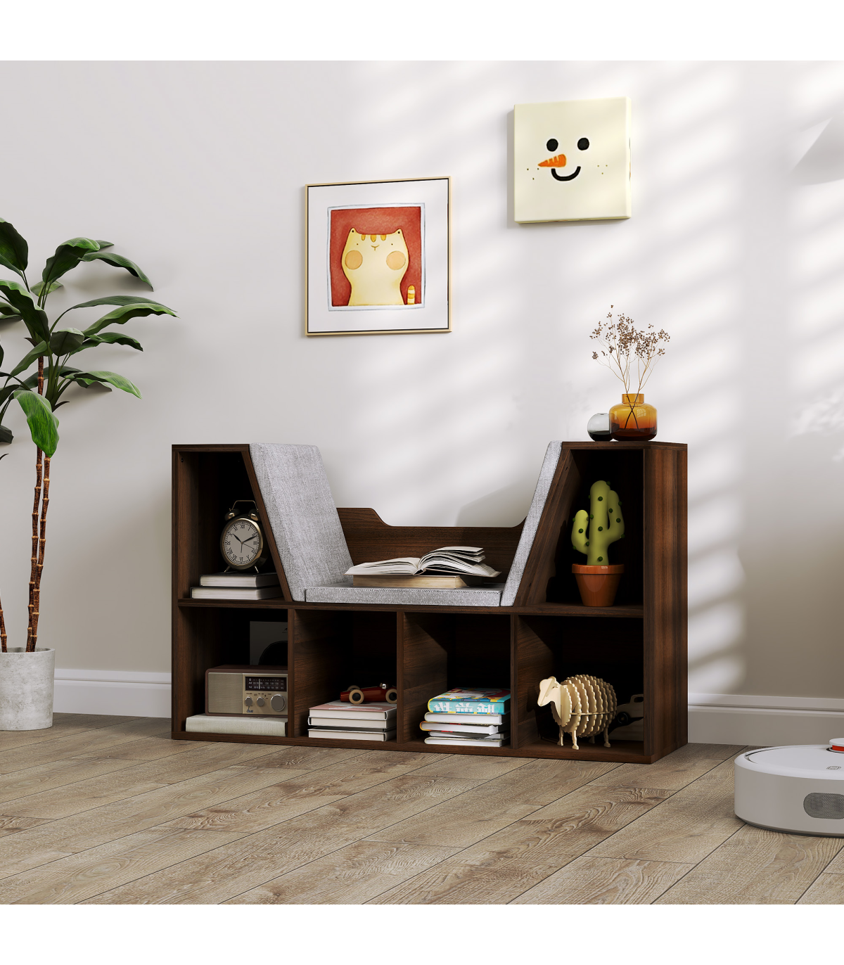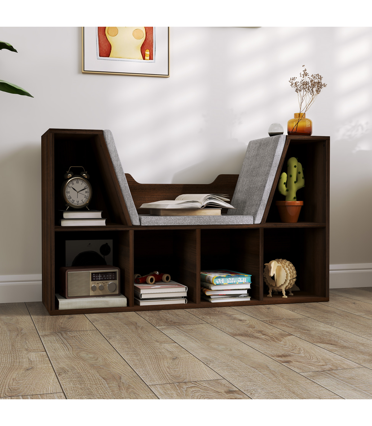 ● Spacious design featuring six storage cubes and two top wooden shelves