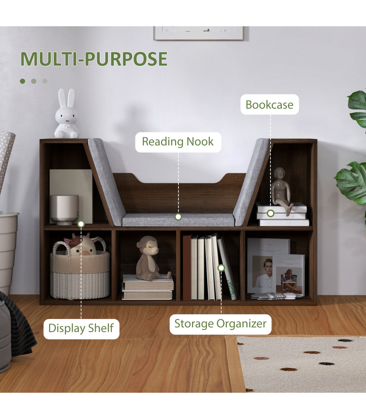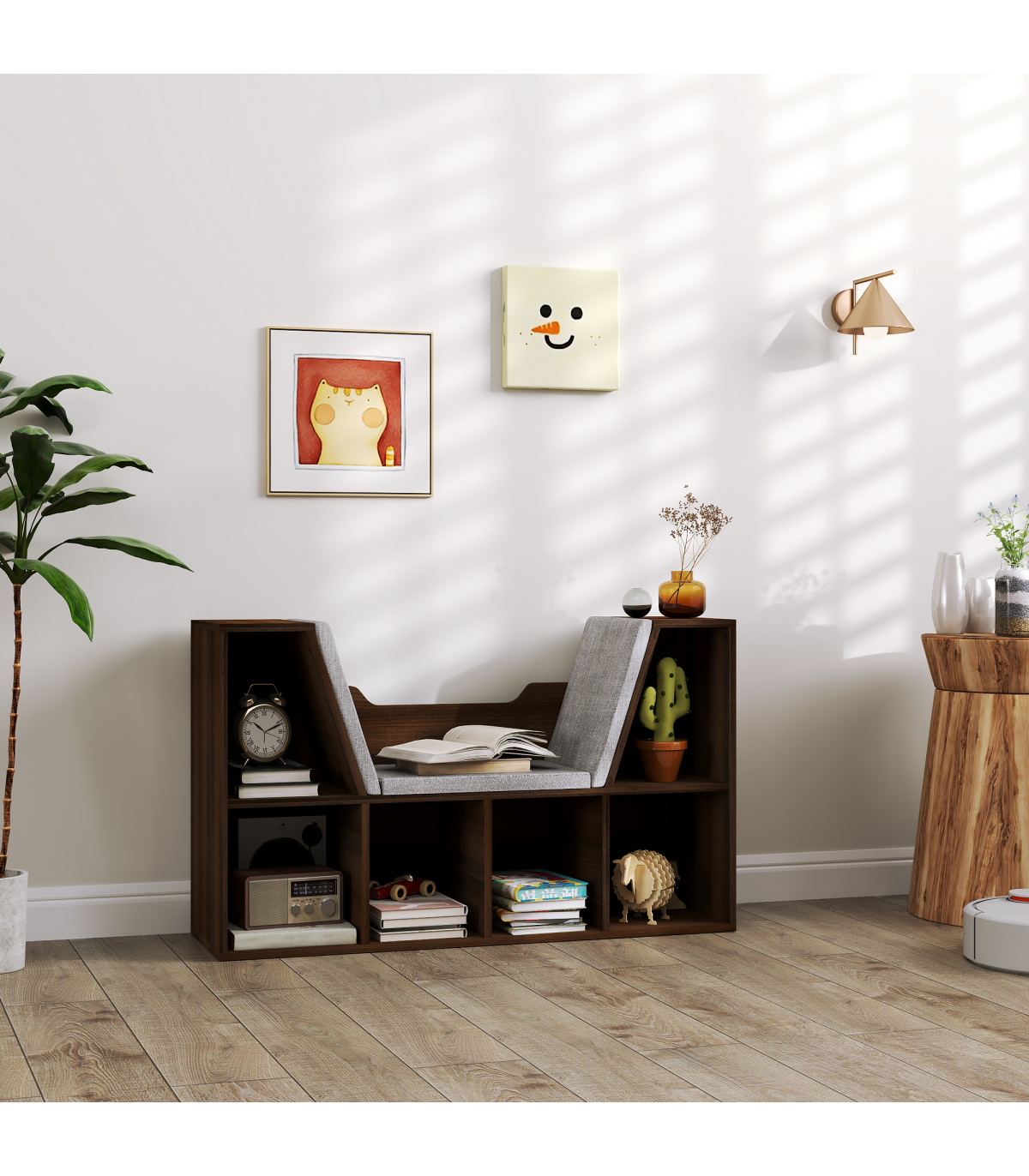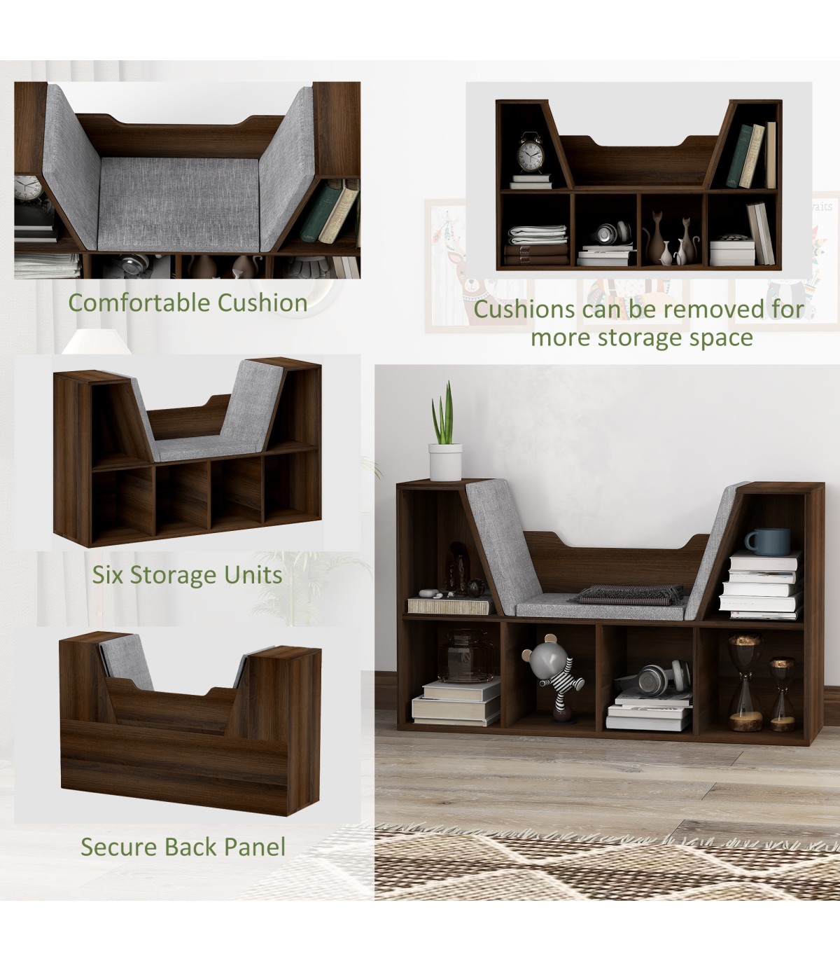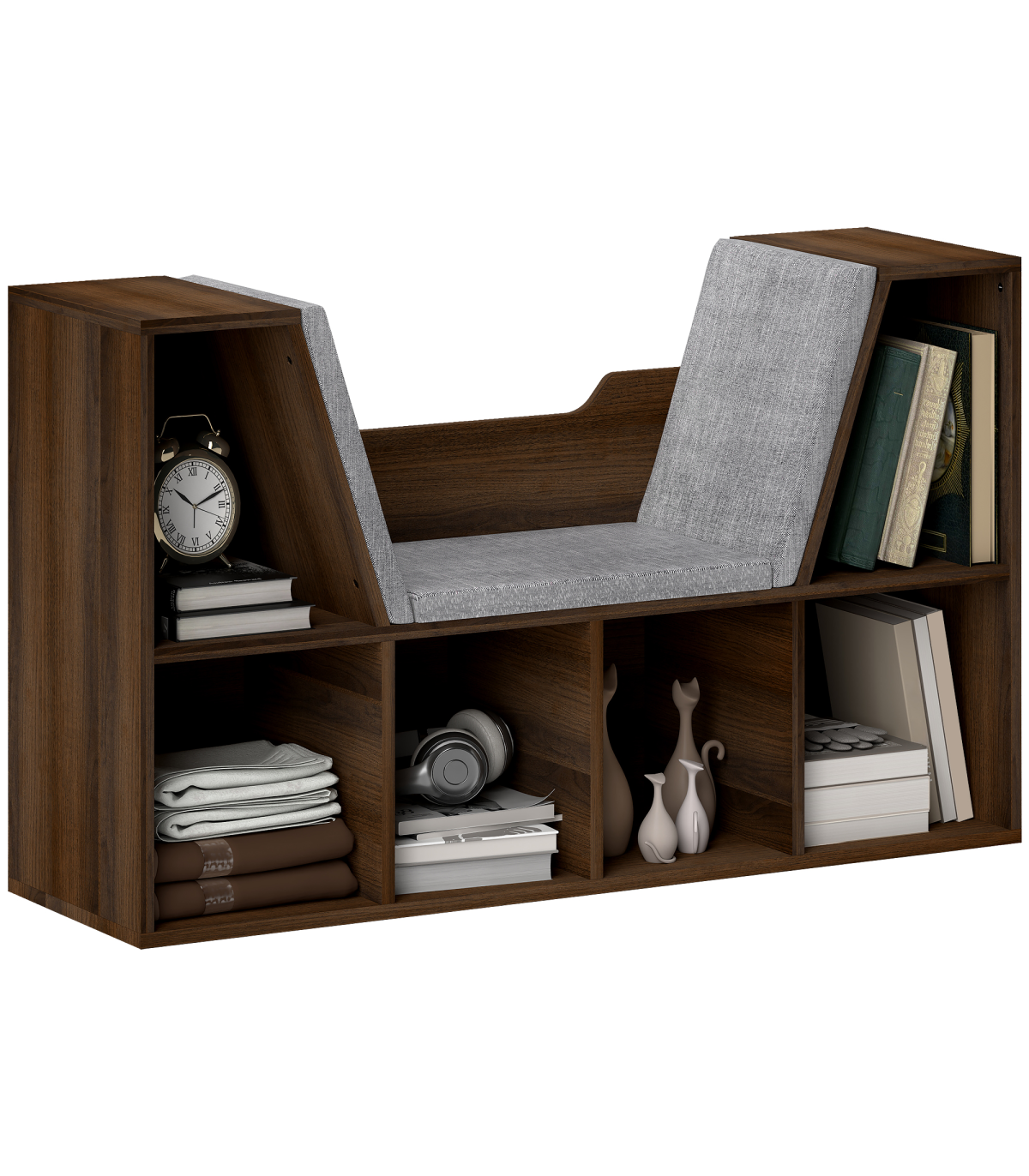 ● Spacious design featuring six storage cubes and two top wooden shelves