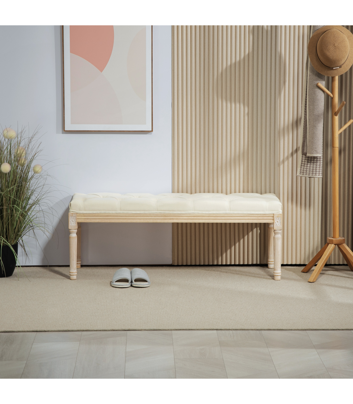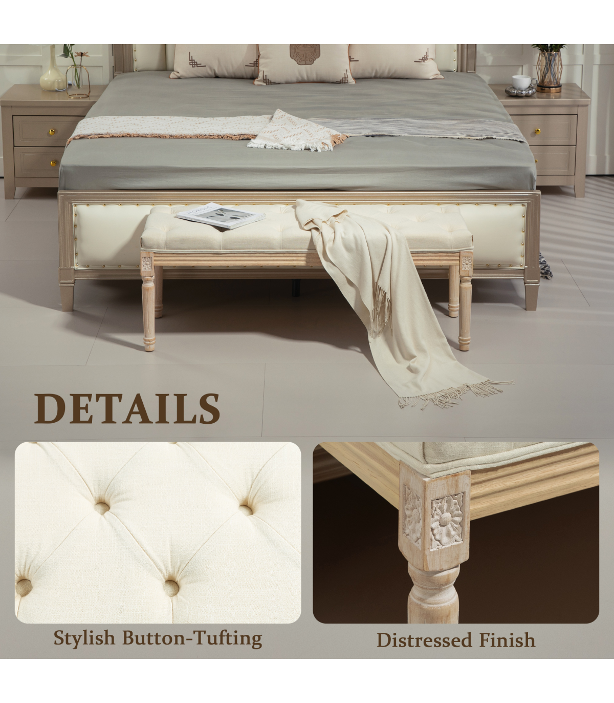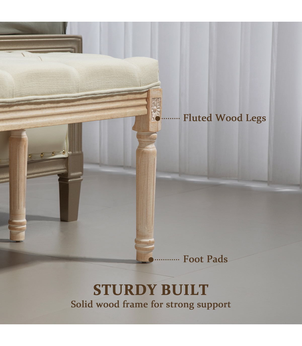 ● Strong and supportive wooden frame, with protective foot pads