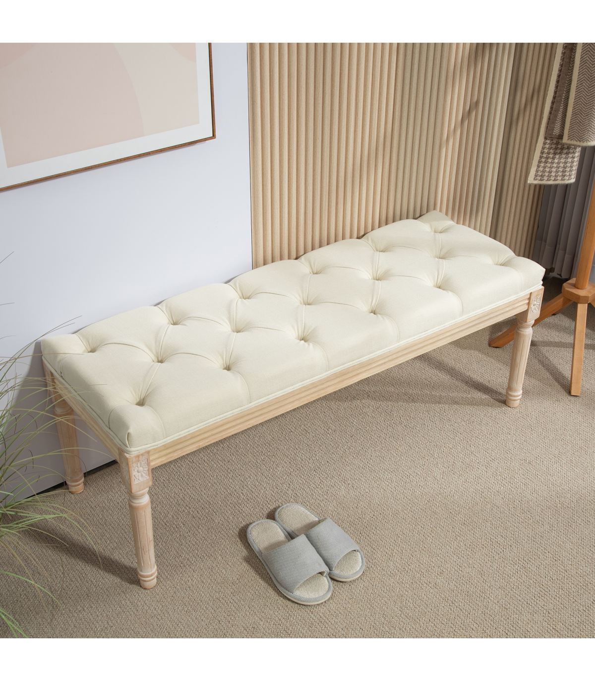 ● Material: Linen-touch polyester and rubberwood