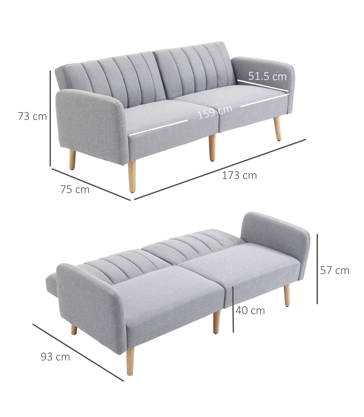 ● Overall Dimension: 173W x 75D x 73Hcm (sofa), 173W x 93D x 57Hcm (bed)