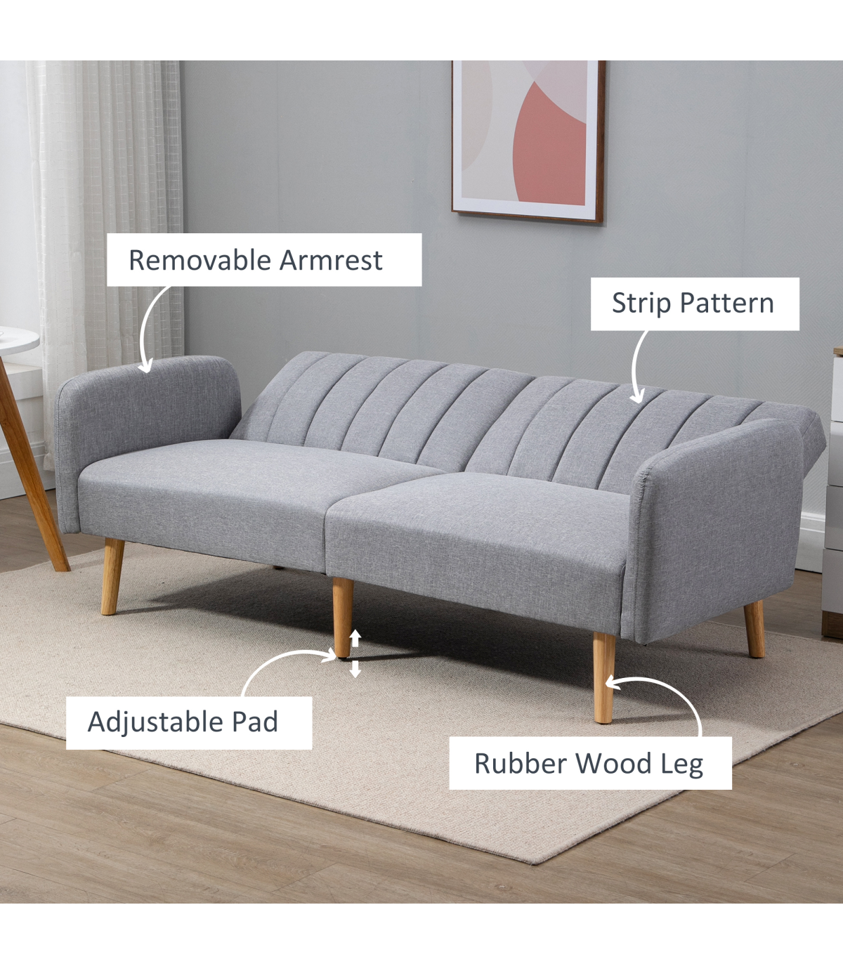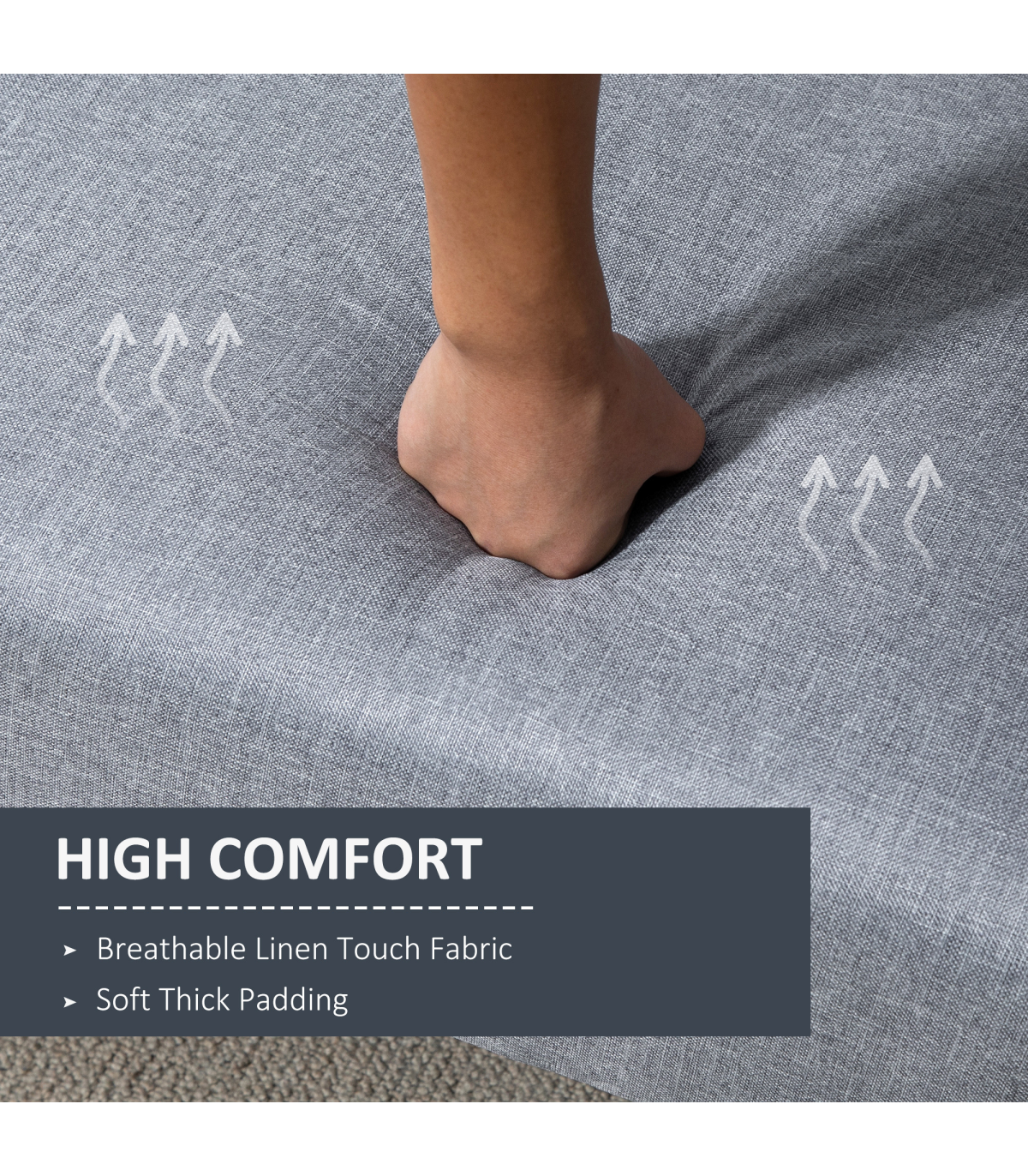 ● Material: Linen (100% Polyester), Foam, Rubber Wood