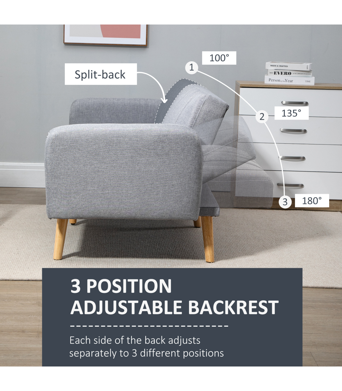 ● Linen-look upholstery is smooth on the skin
