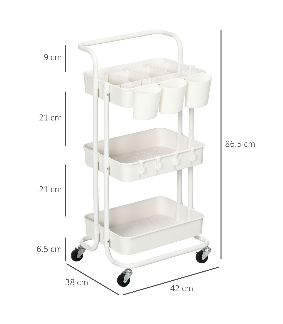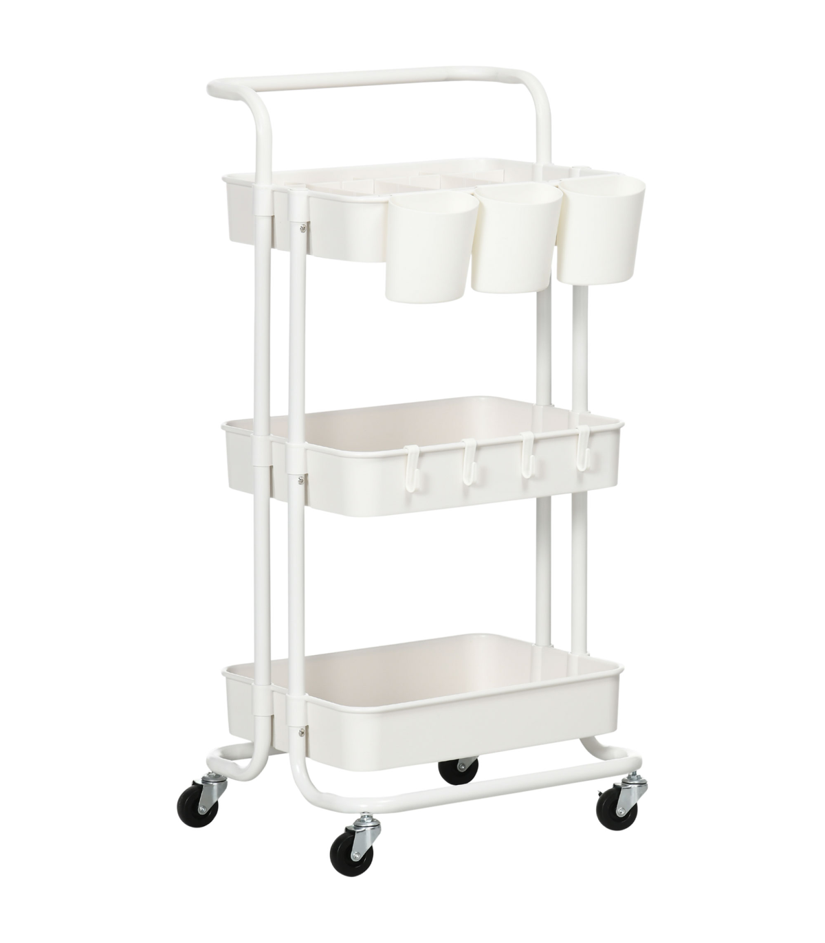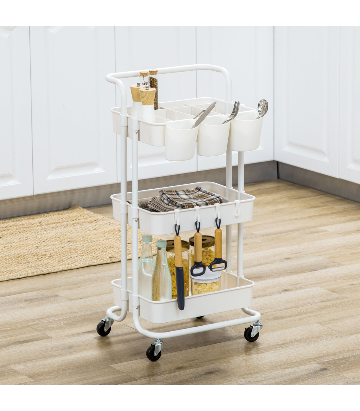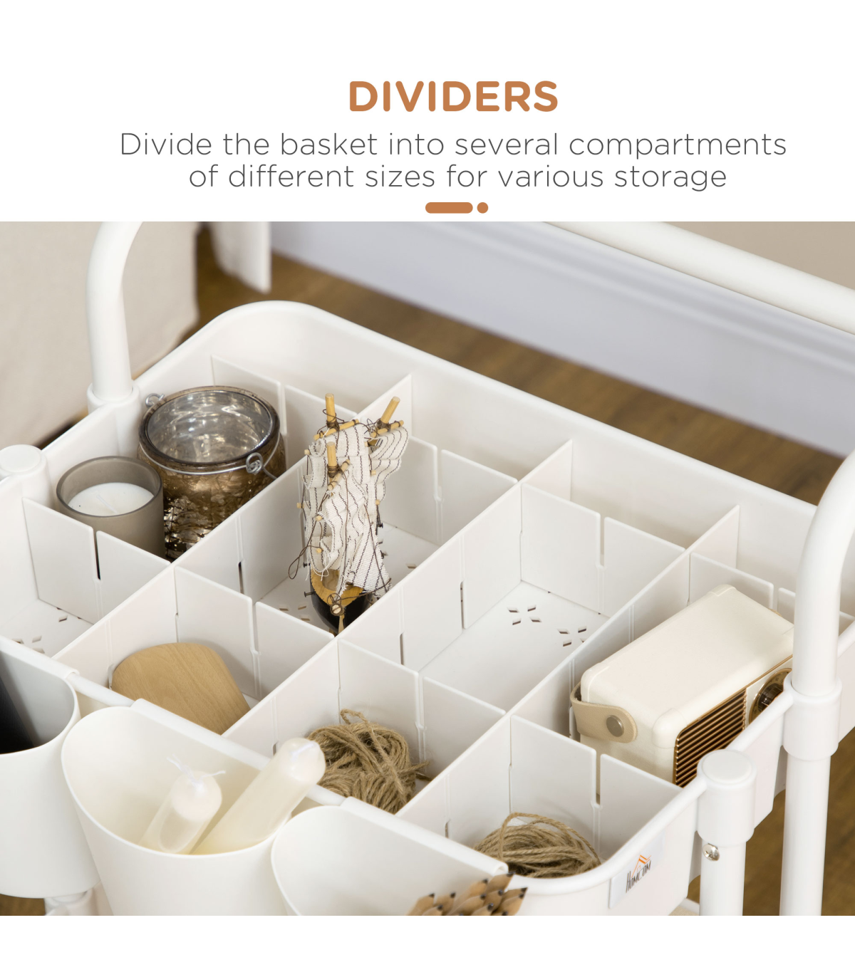 two wheels can be locked in place. Top tray is sectioned into 12 parts for better organisation. A kitchen storage trolley, drinks trolley - or how about keeping all beauty essentials together? The choice is yours.