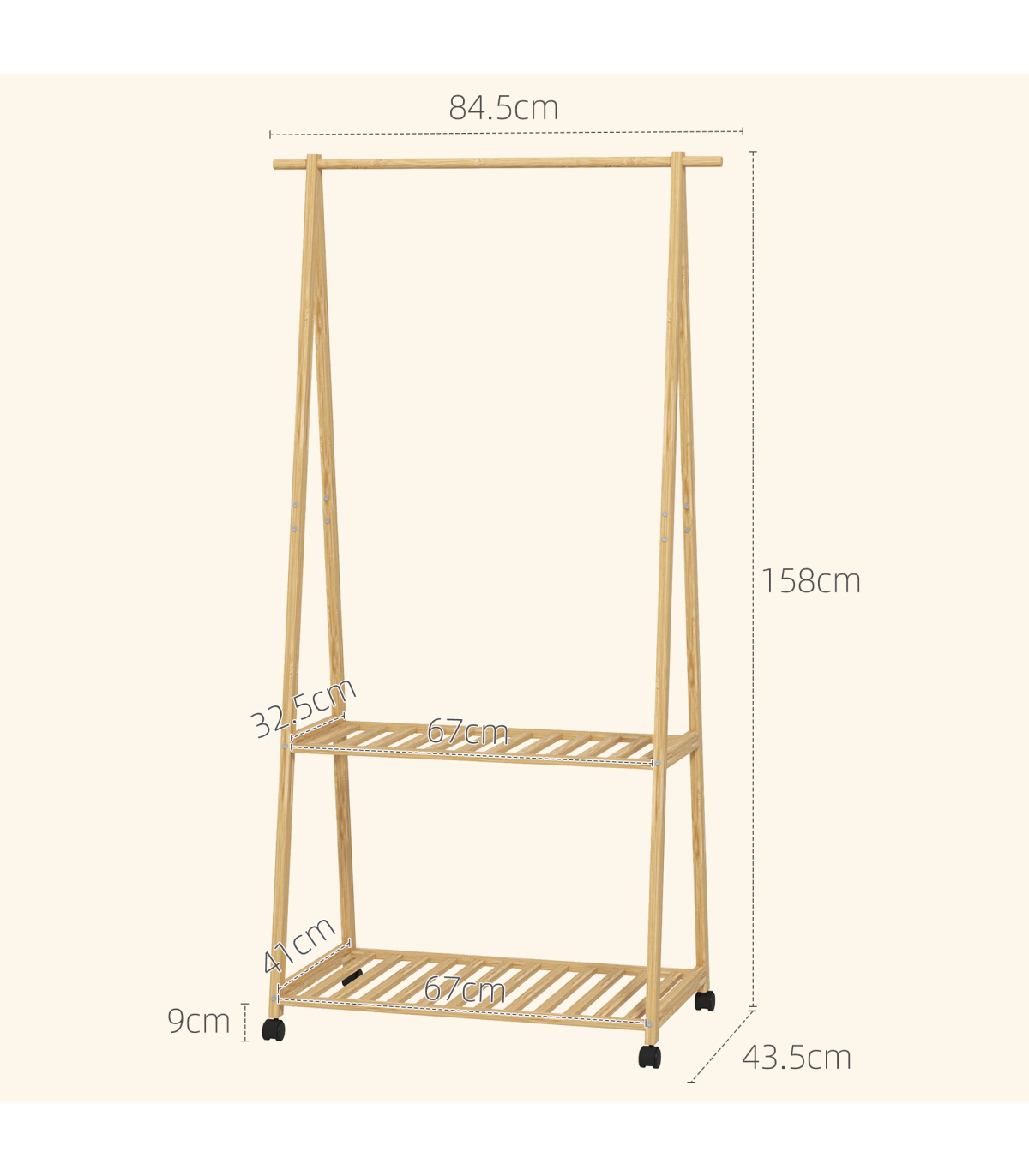 ● Shelf Size: 67W x 32.5Dcm (Top), 67W x 41D x 30Hcm (Bottom)
