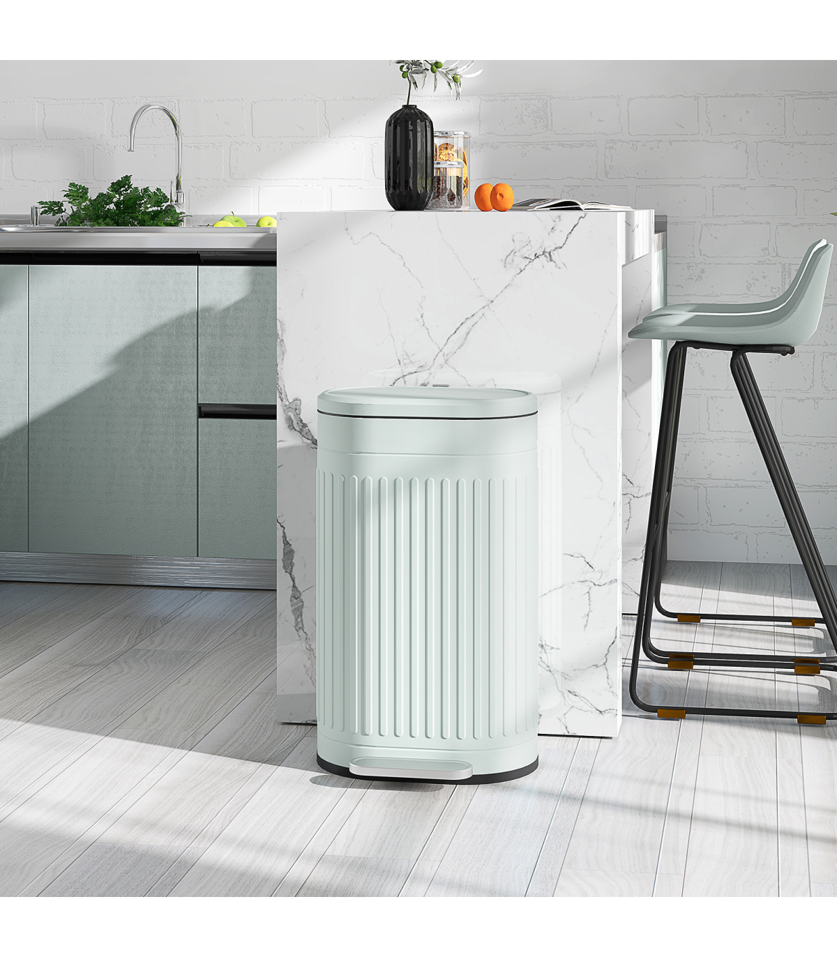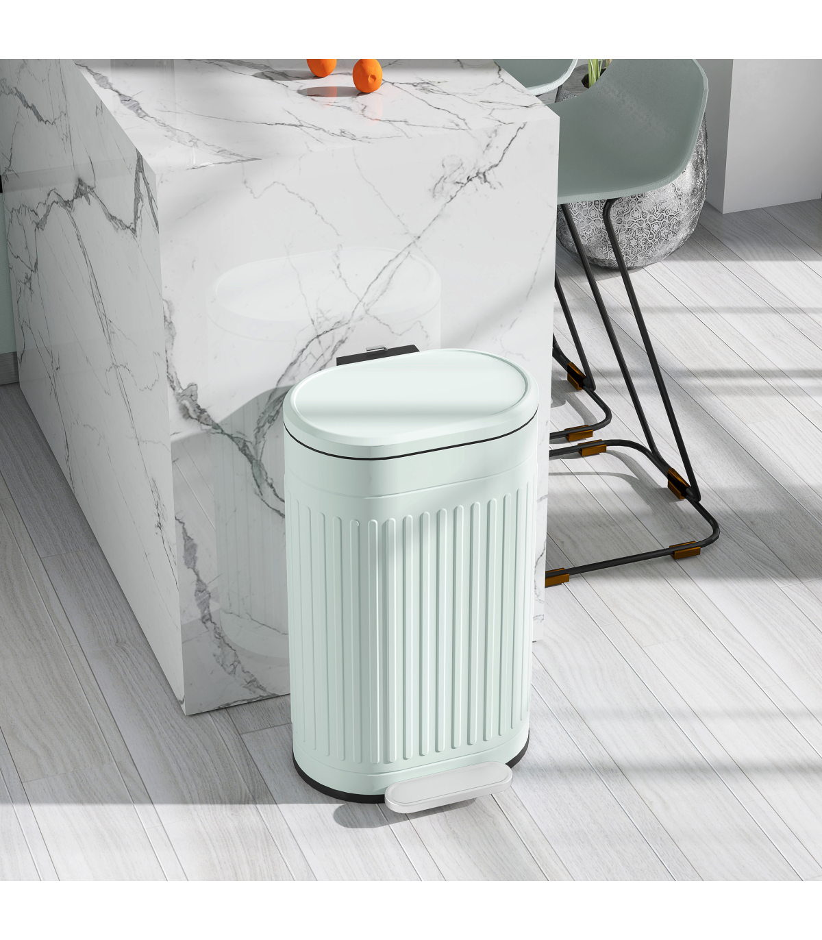 ● Silent soft-close with pedal opening. Quiet operation
