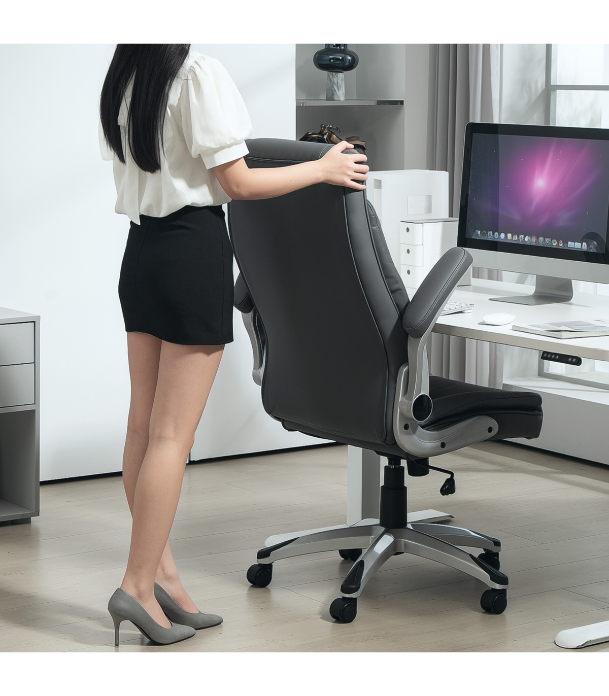 ● Comfortable design of a headrest, high back, thick padding all over, high arms and an adjustable height