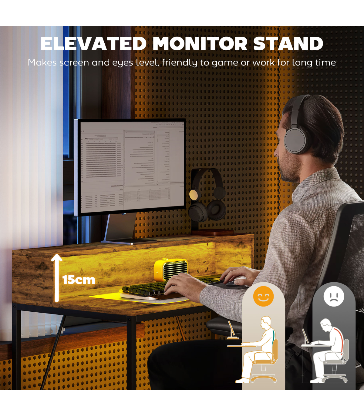 ● Suitable monitor stand to reduce shoulder and neck pain