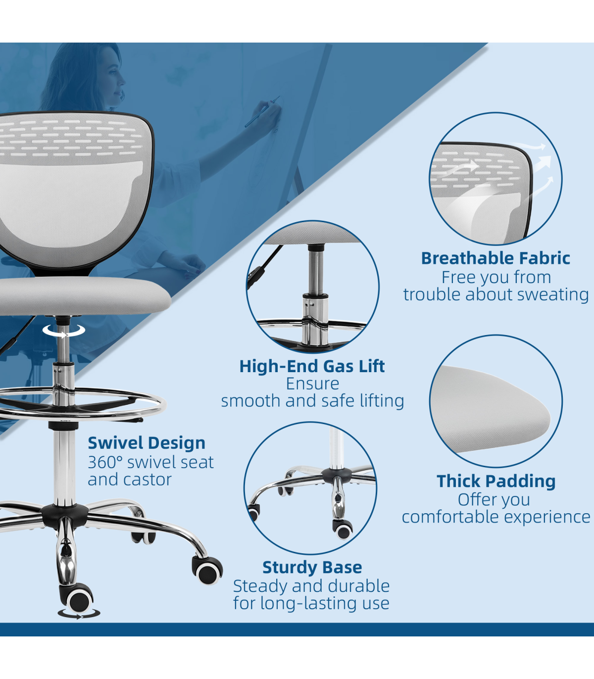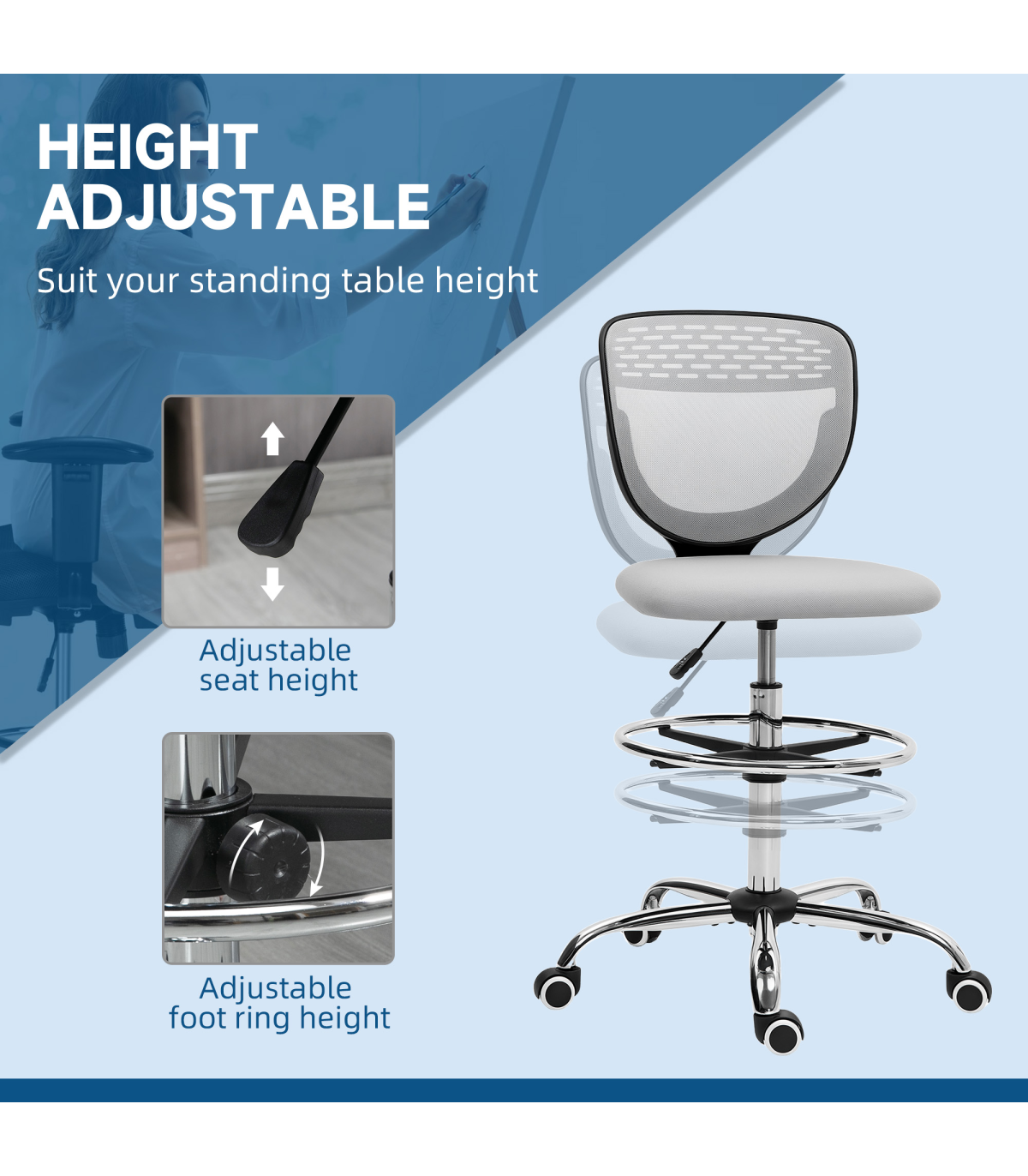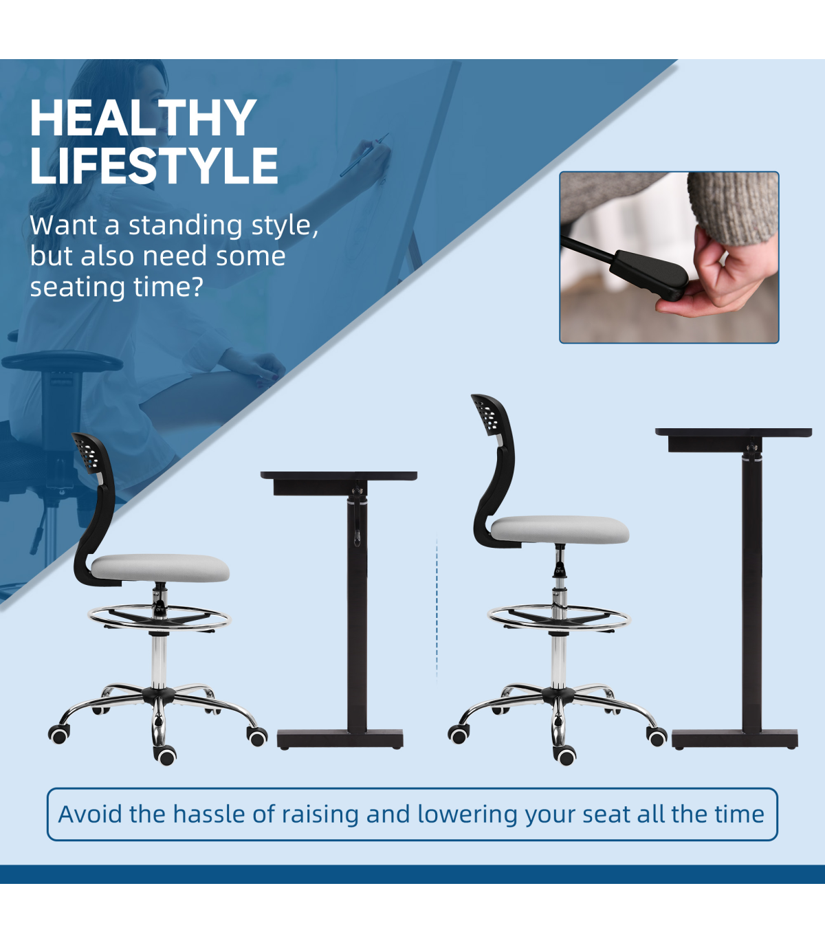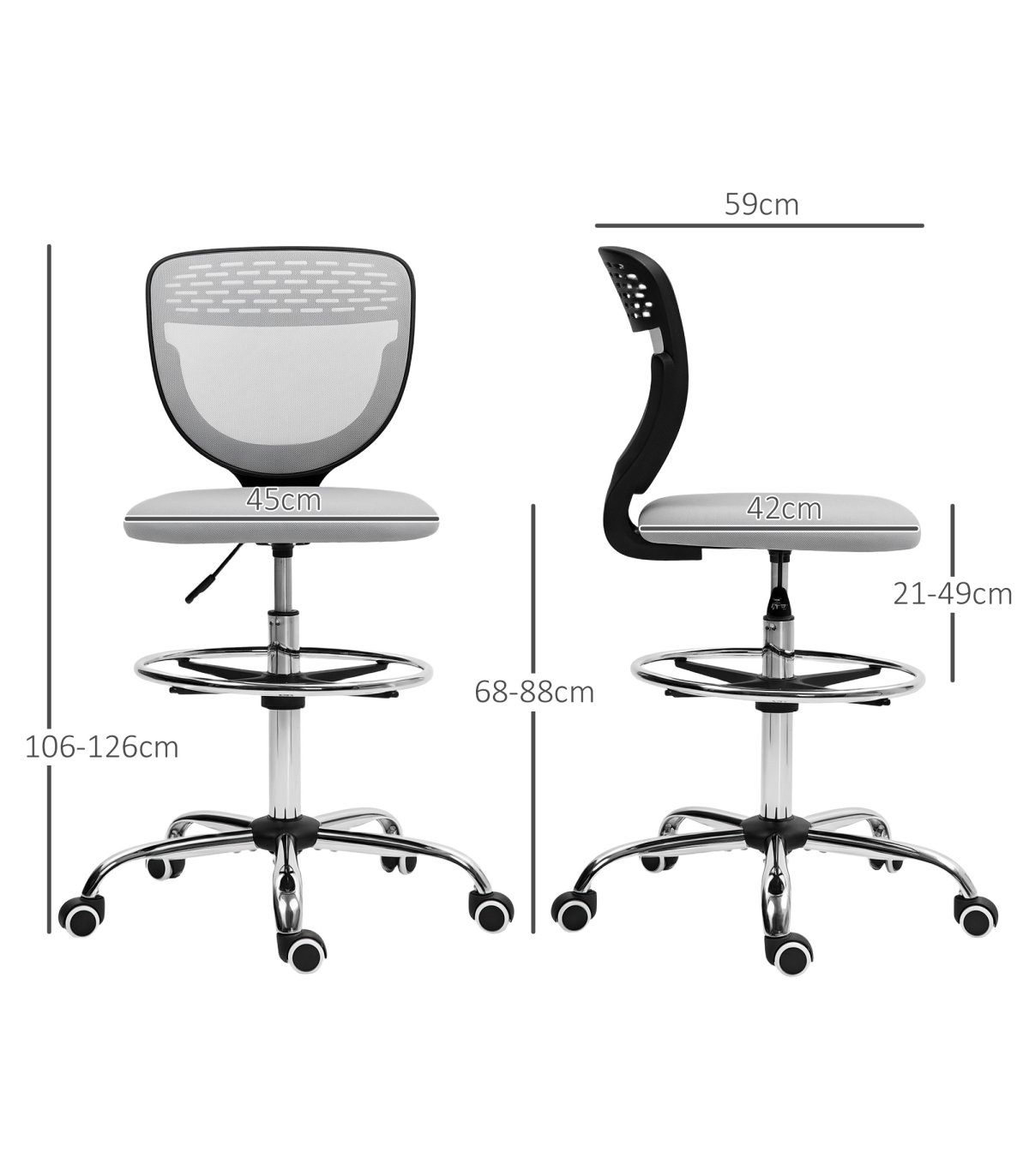the armless design and swivel-seat movement gives you so much freedom. Complete with an adjustable foot-rest bar.