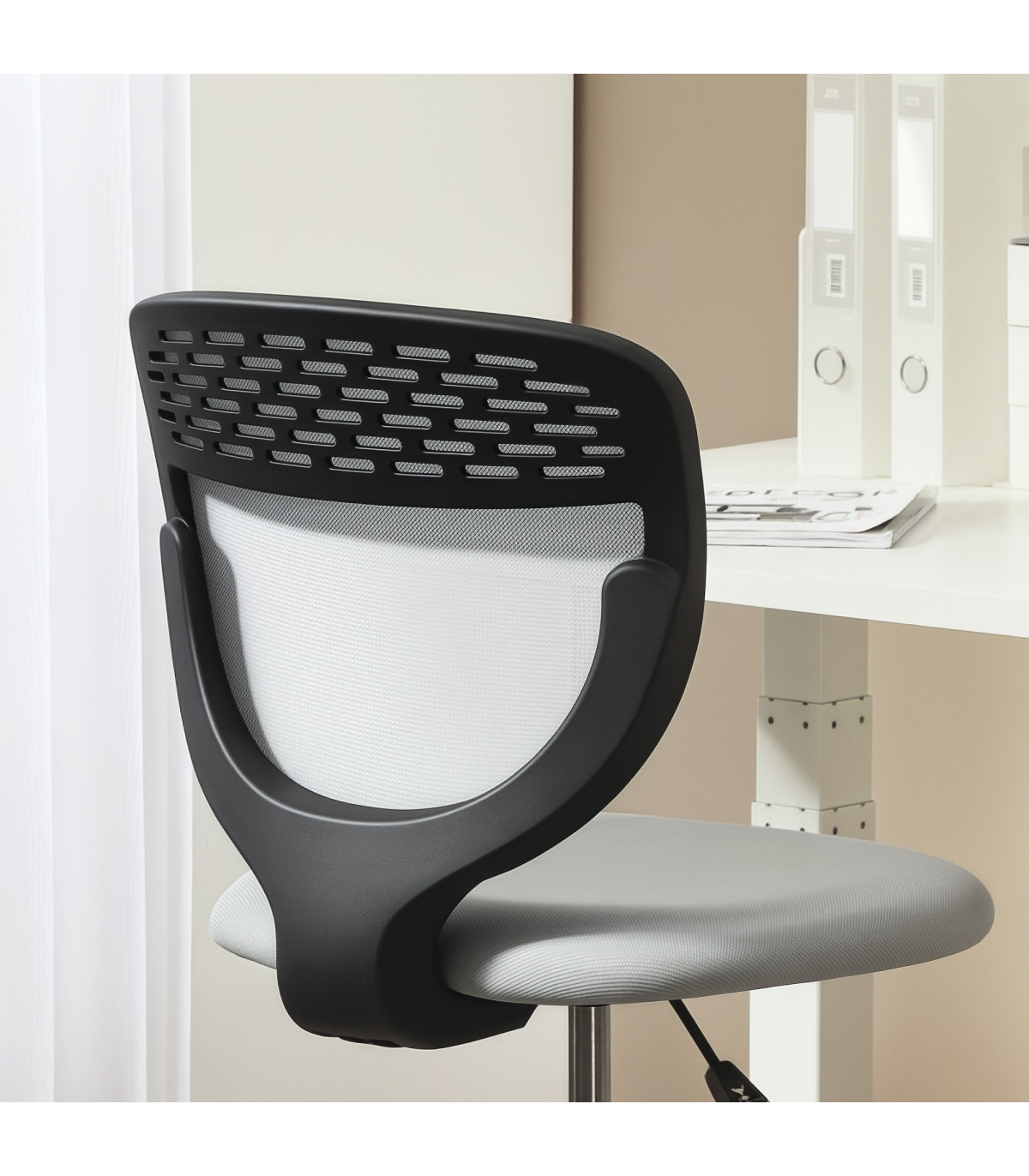 ● Armless design and 360° swivel seat gives body plenty of freedom and movement