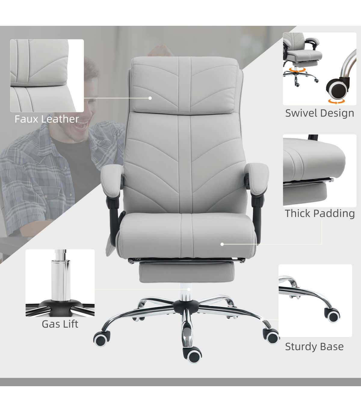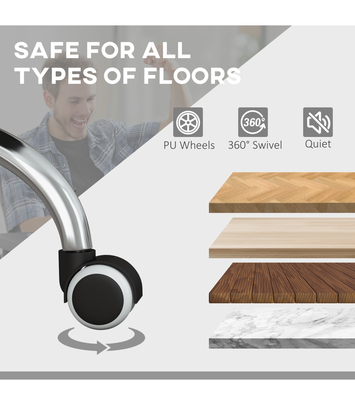 ● PC chair is filled with foam for comfort, with faux leather upholstery. Steel base for sturdiness. Great for long days
