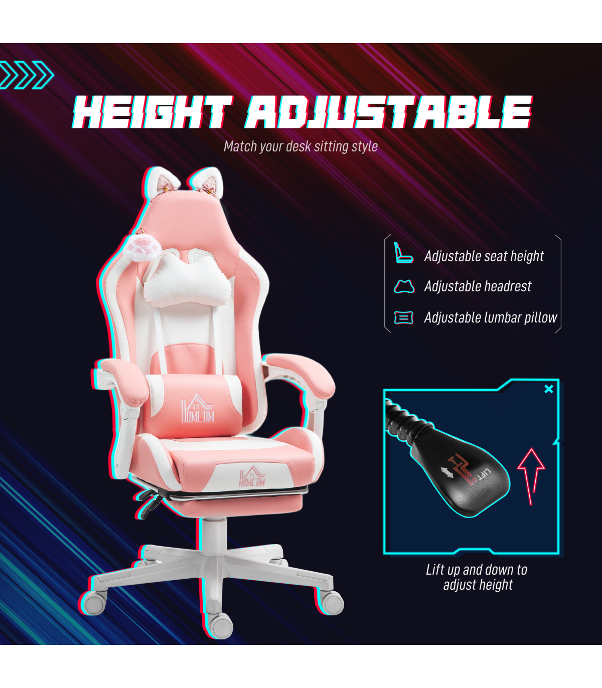 ● 44-52cm adjustable seat: match your desk level