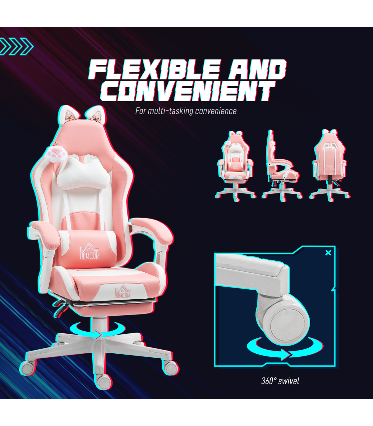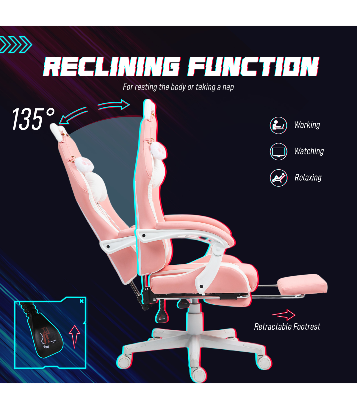 ● Adjustable and detachable head and lumbar pillows for extra support and comfort
