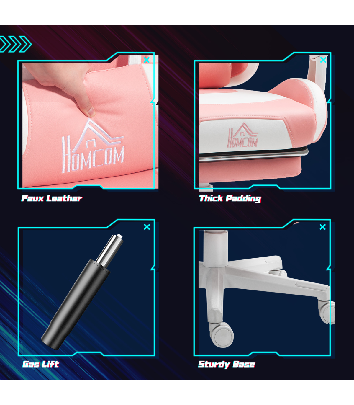 ● Medium-density foam padding for comfort, with smooth, easy-clean faux leather upholstery