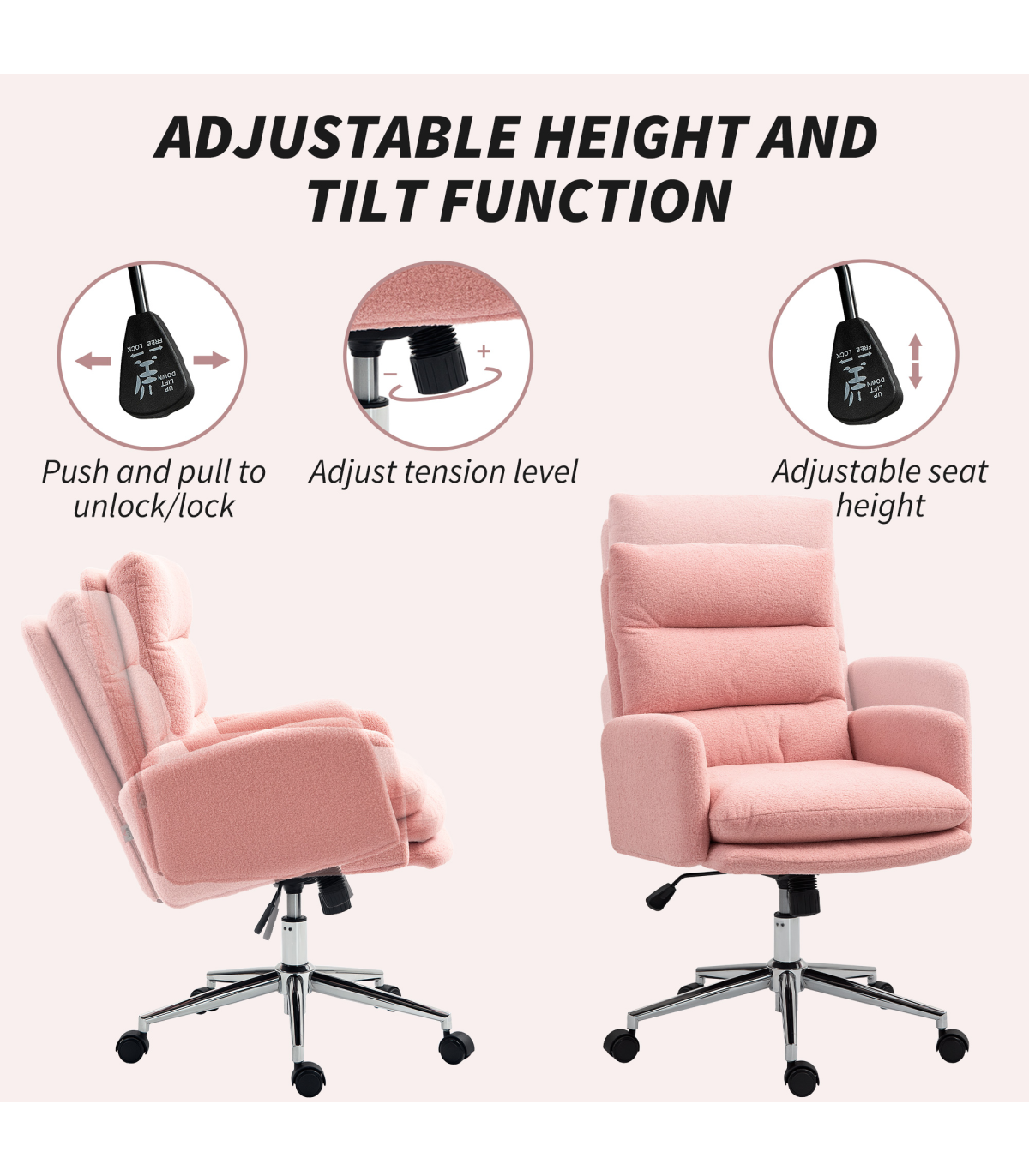 ● Tilt function allows rocking for relaxation