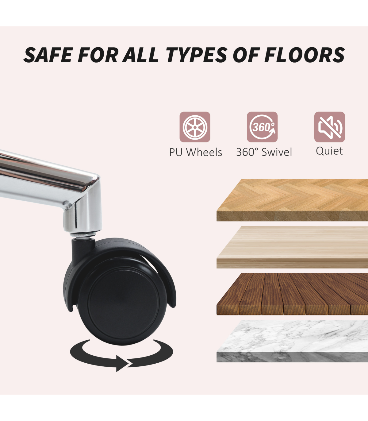 ● PU wheels glide smoothly across various surfaces