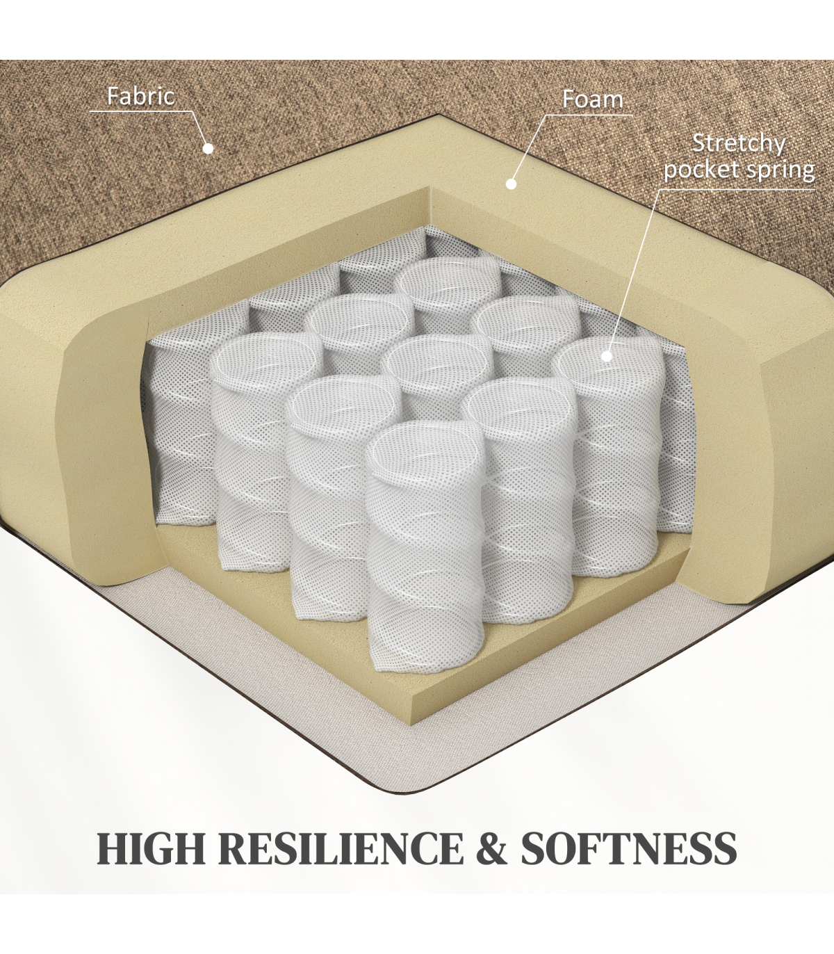 ● Pocket spring filling and high-density foam for lots of comfort. Smooth linen-look upholstery