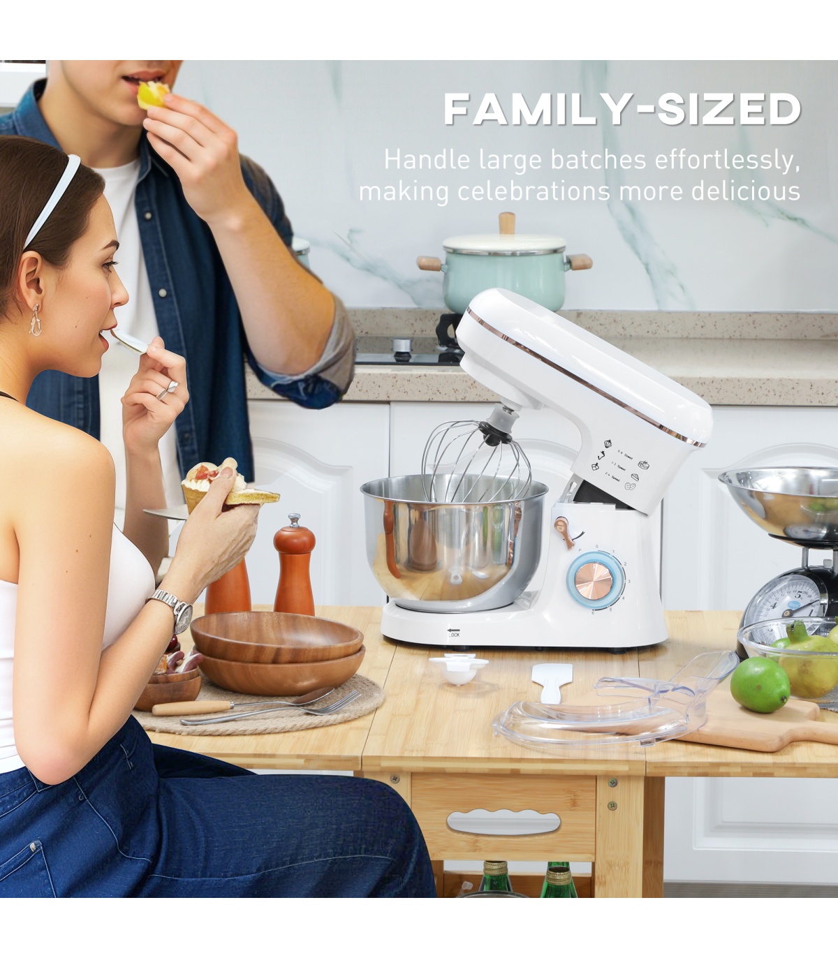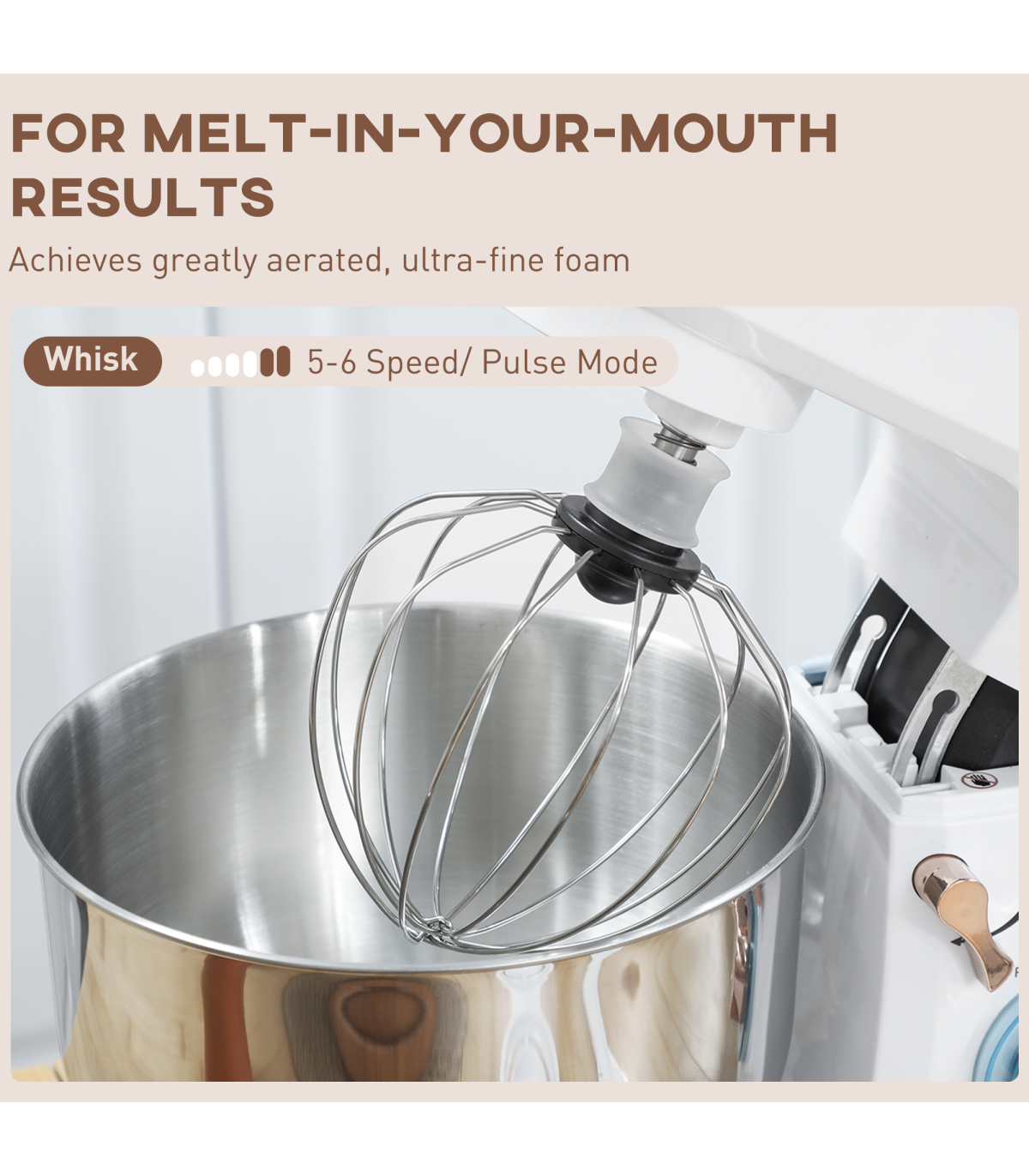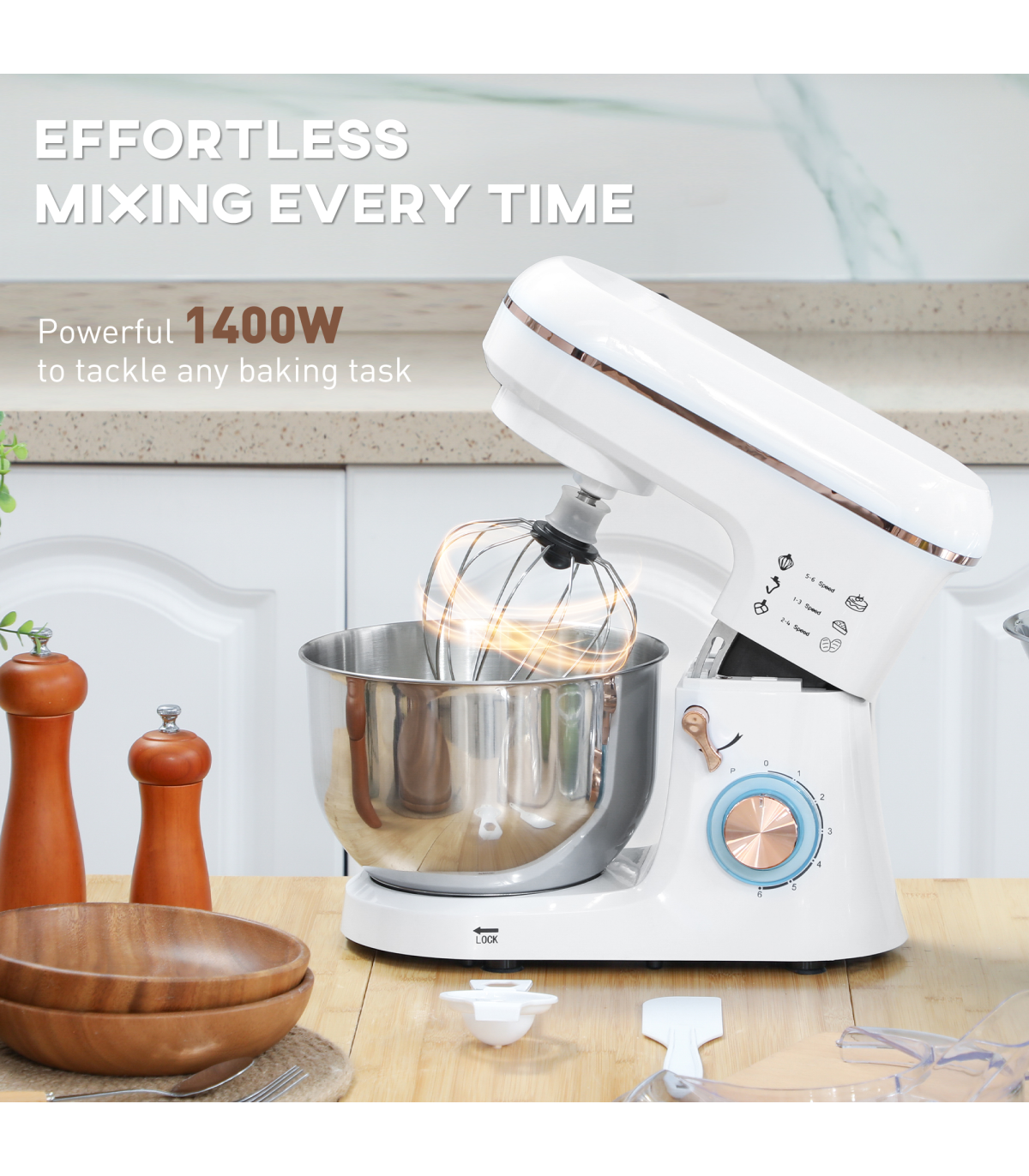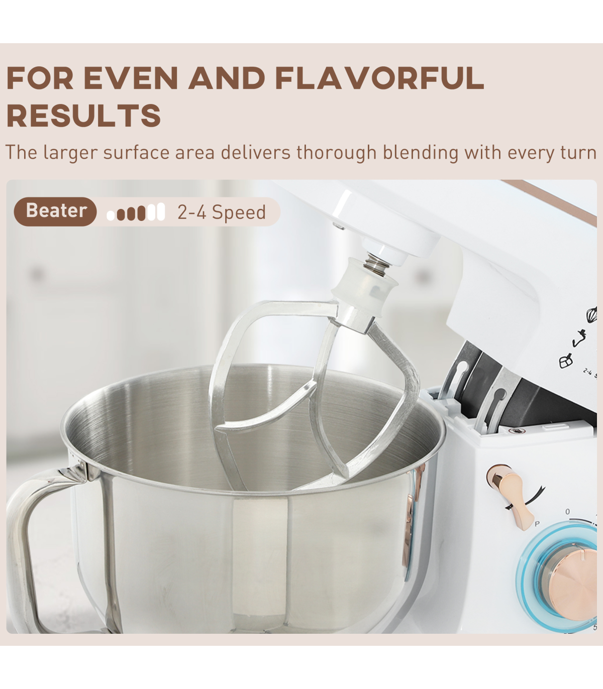 ● Includes whisk, dough hook and mixing beater for diverse tasks