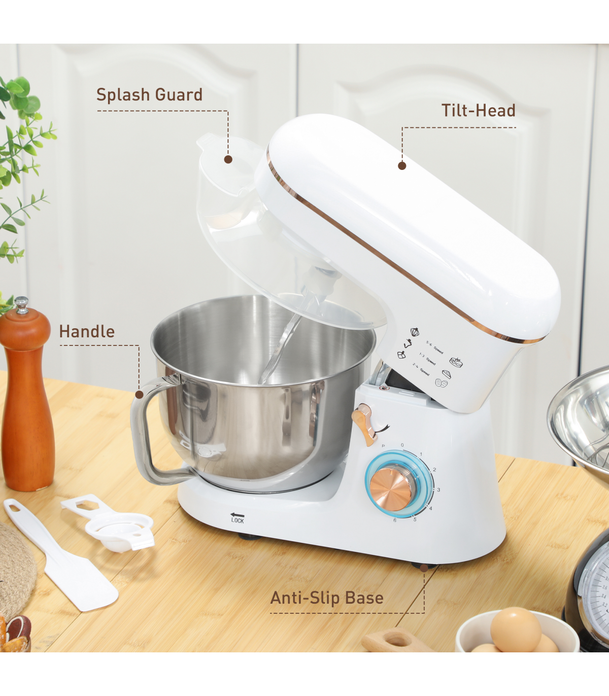 ● Tilt-head design simplifies bowl and accessory handling