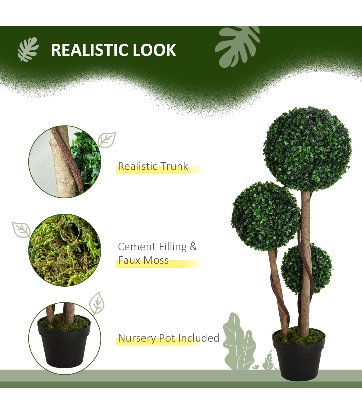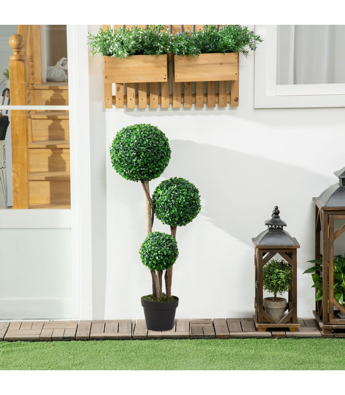 ● Cool three-ball boxwood tree design