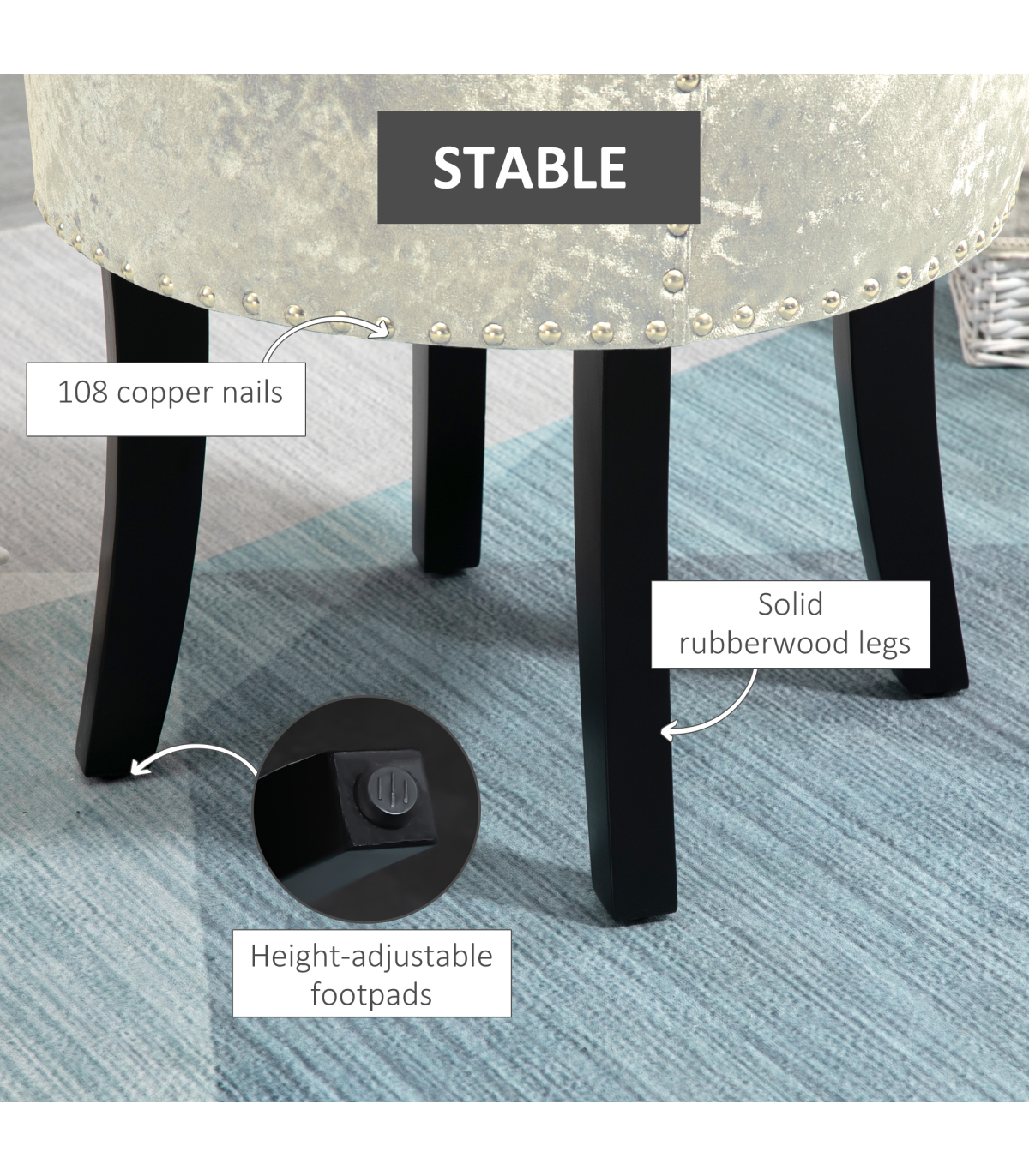 ● Solid rubberwood legs are robust