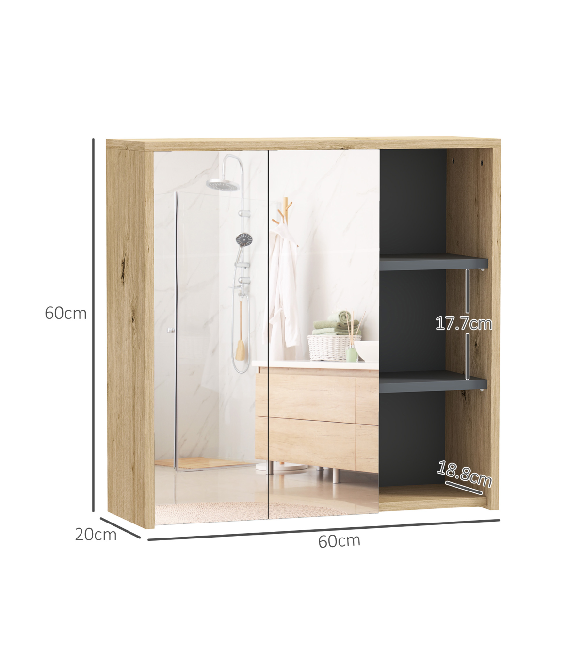 ● Overall Dimension: 60L x 20W x 60Hcm